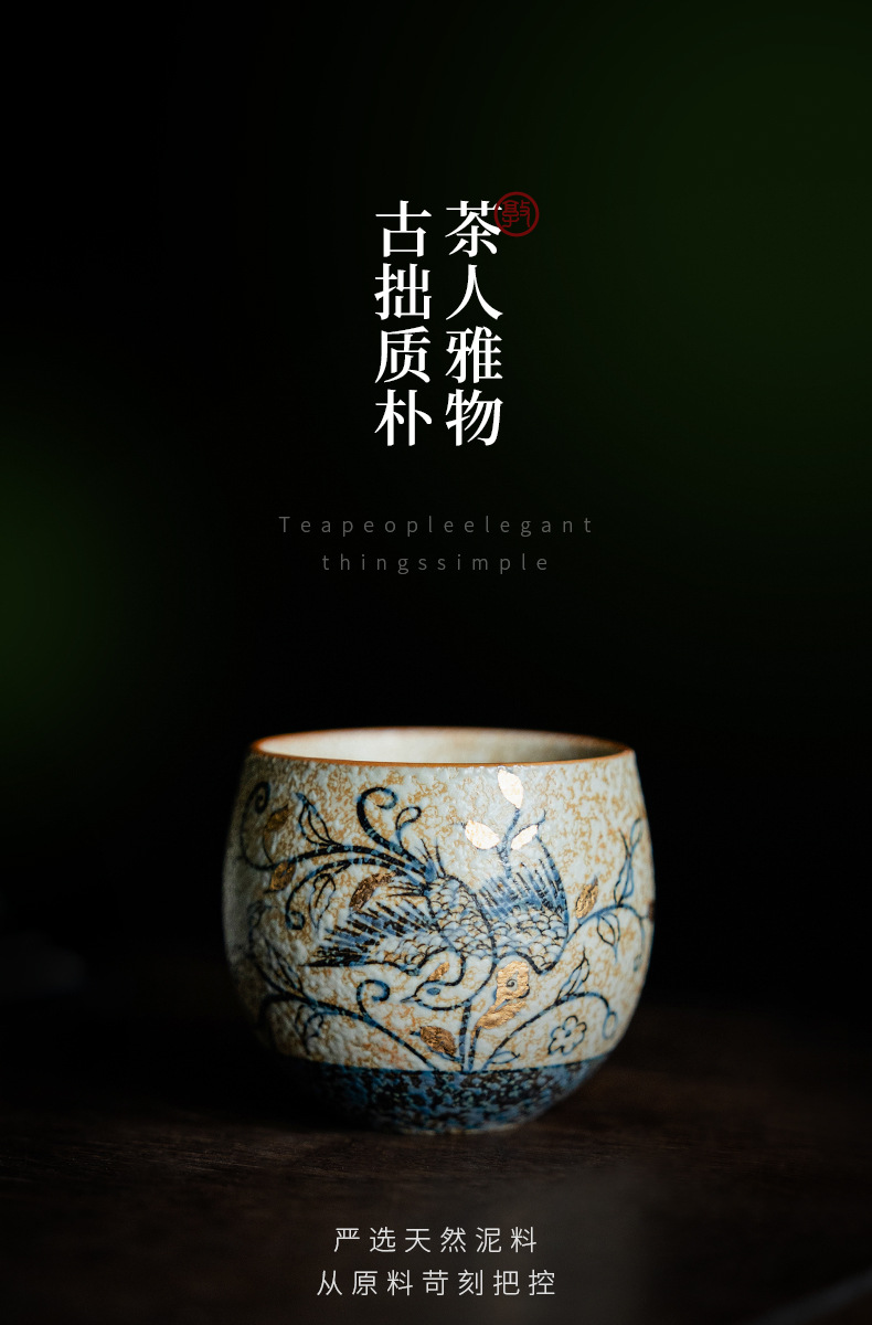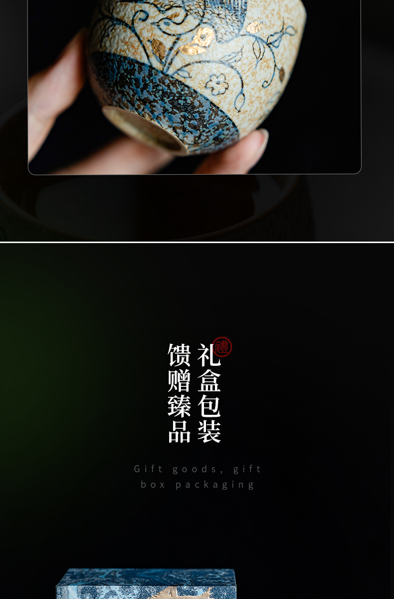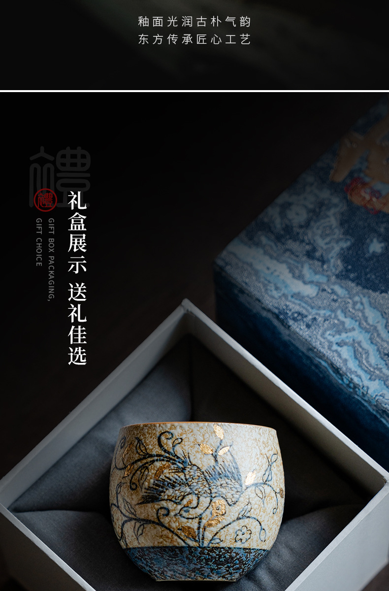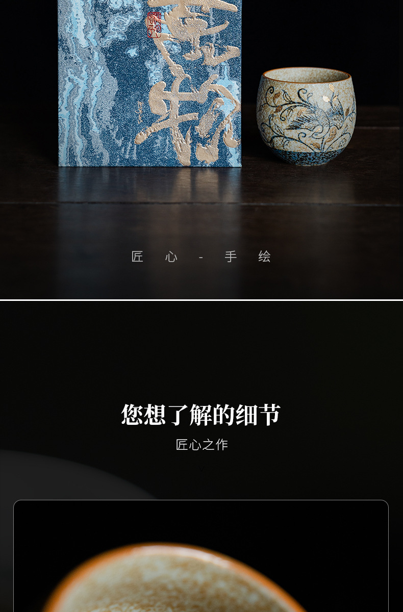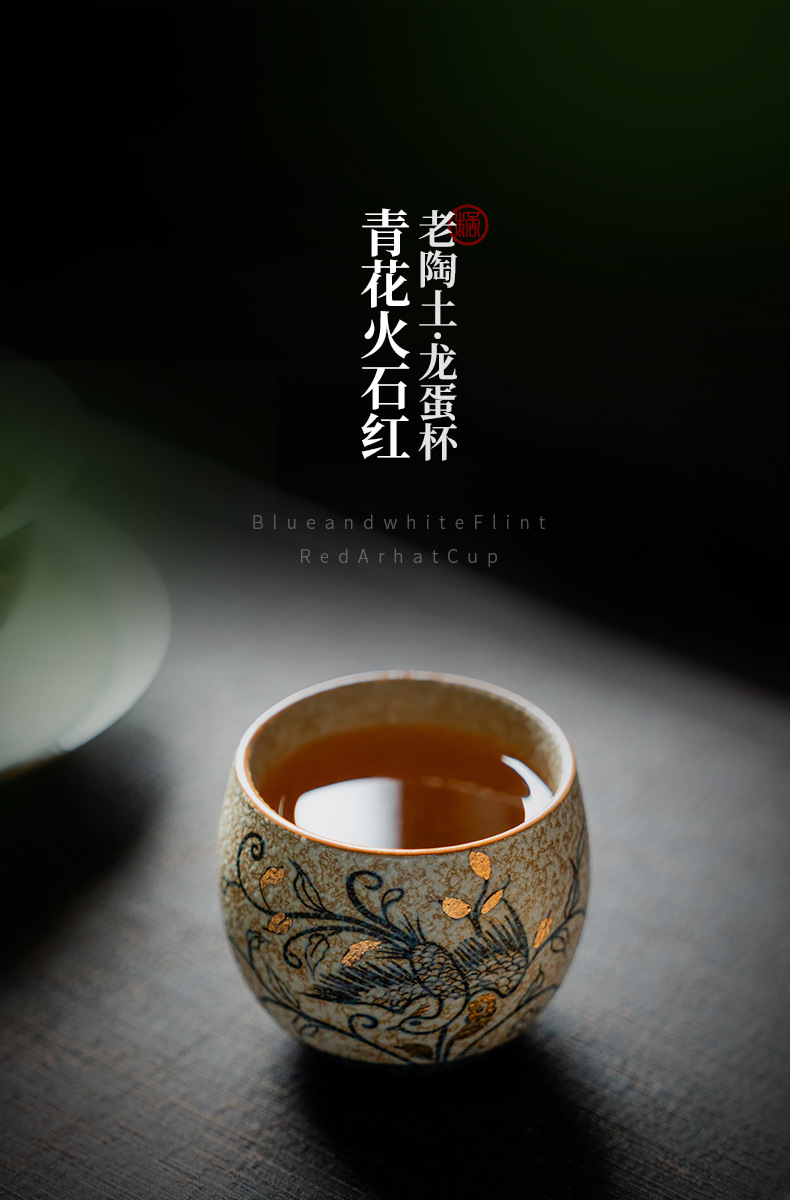 Vẽ tay màu xanh và trắng đá lửa cốc thiền đỏ cốc trà cốc chủ sở hữu gốm cốc đơn cốc đặc biệt cá nhân cốc trà