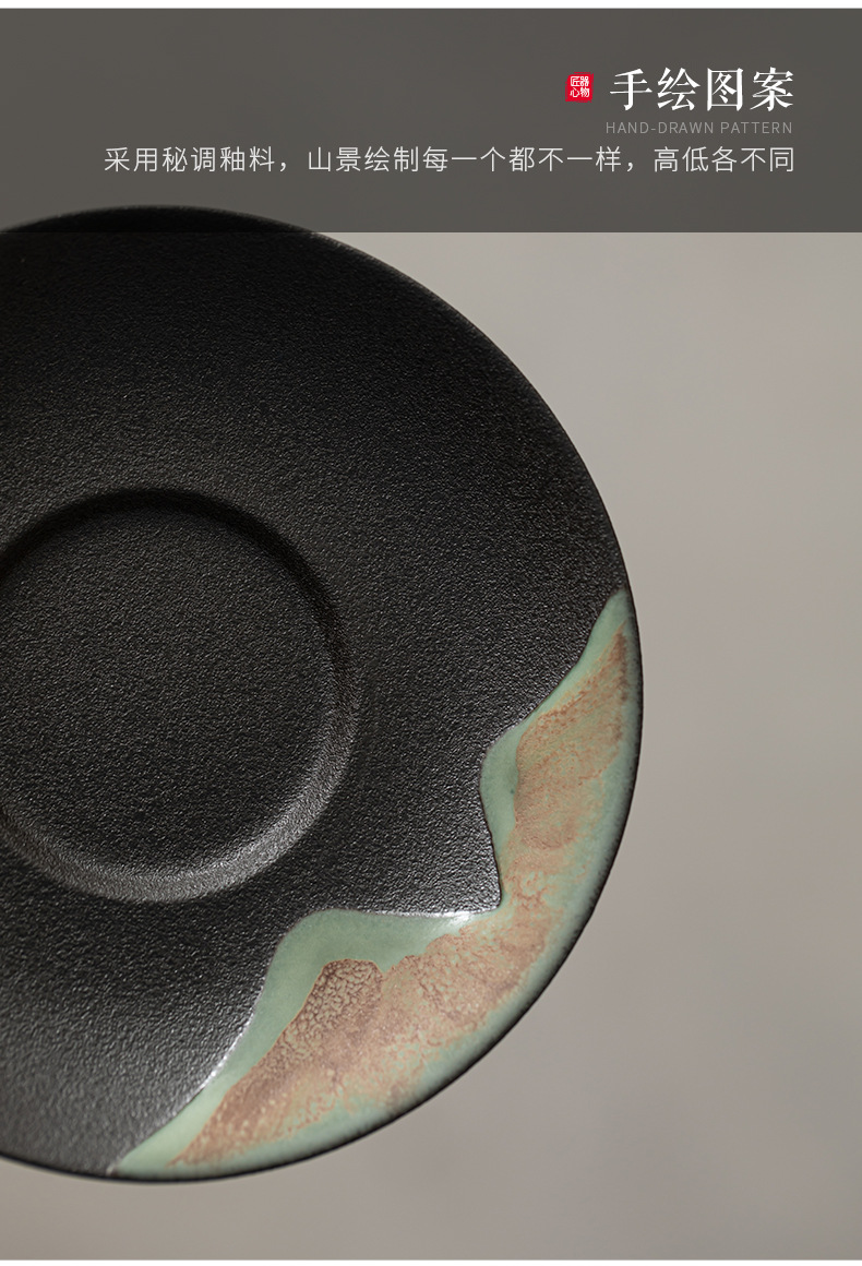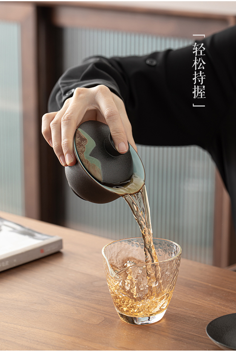 - Vẽ tay núi xa Sancai có nắp bát gốm sứ Kung Fu bộ trà chén chén trà chén gốm thô dụng cụ pha trà cầm tay gia dụng