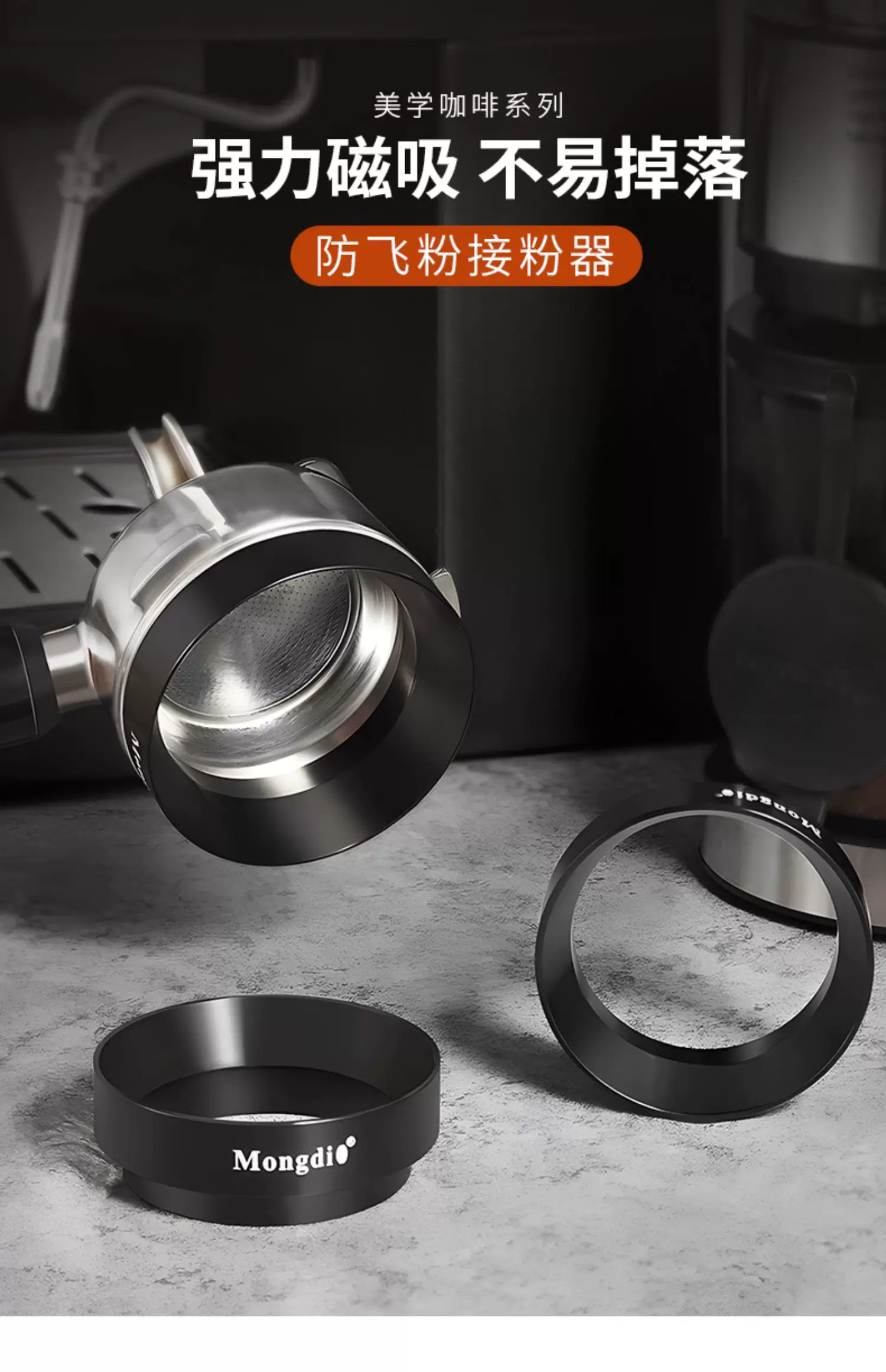 - Vòng thu bột cà phê Mongdio, tay cầm cà phê, vòng chống bắn bột, 51mm/58mm, bộ thu bột, cốc thu bột từ tính