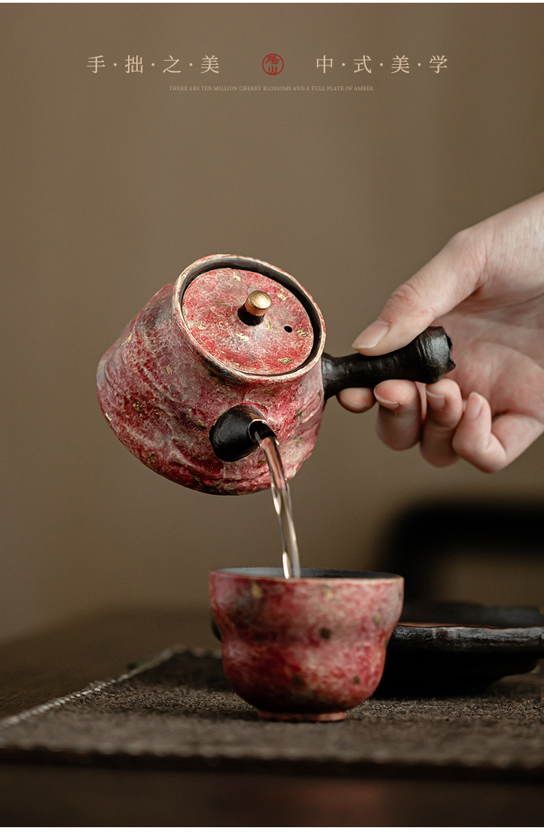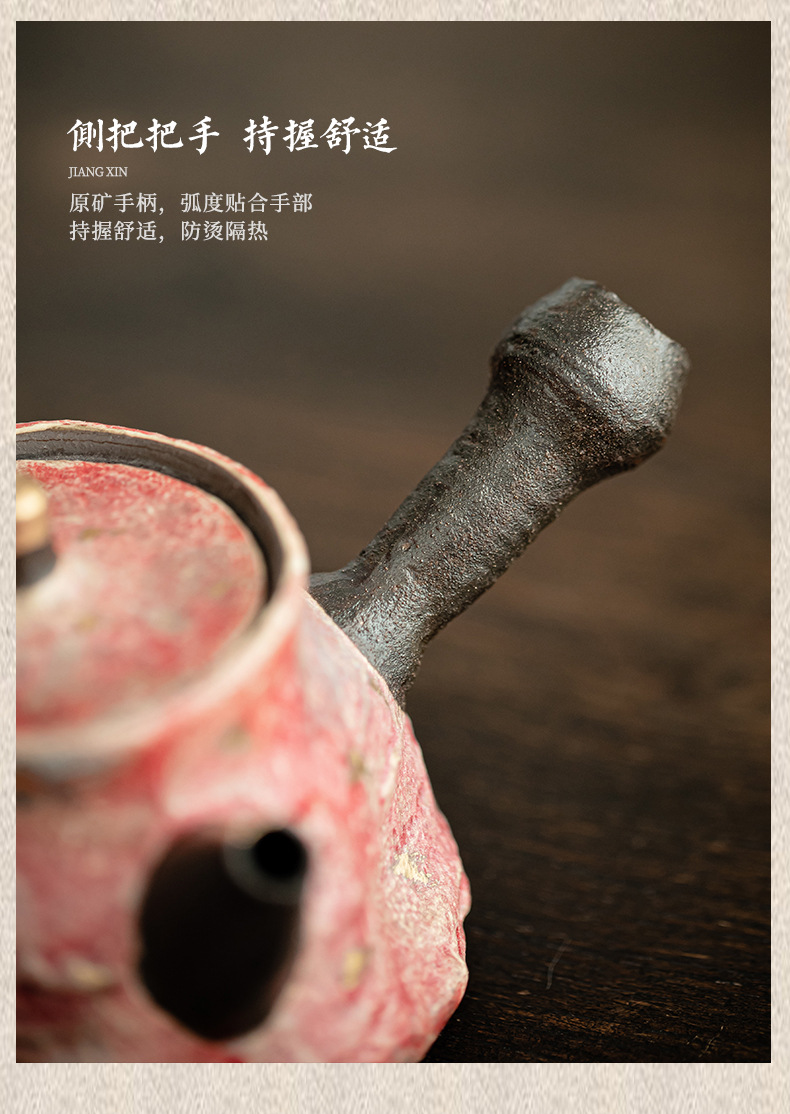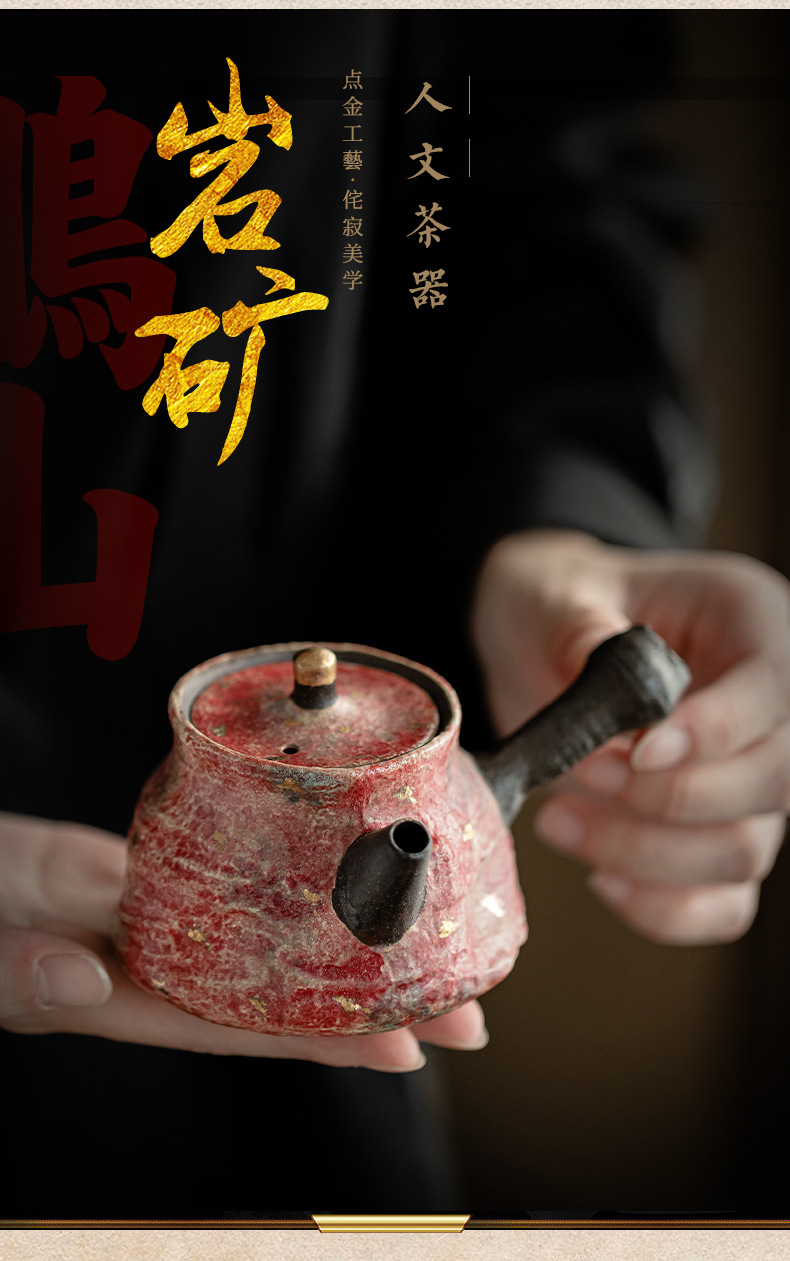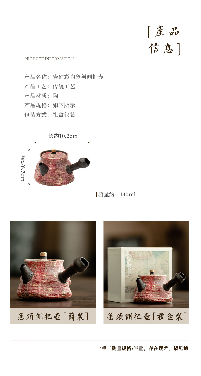 Wabijifeng Rock Mine Gốm vẽ râu gấp bên tay cầm ấm trà gốm sứ dung tích lớn sáng tạo ấm đơn bộ lọc hộp quà
