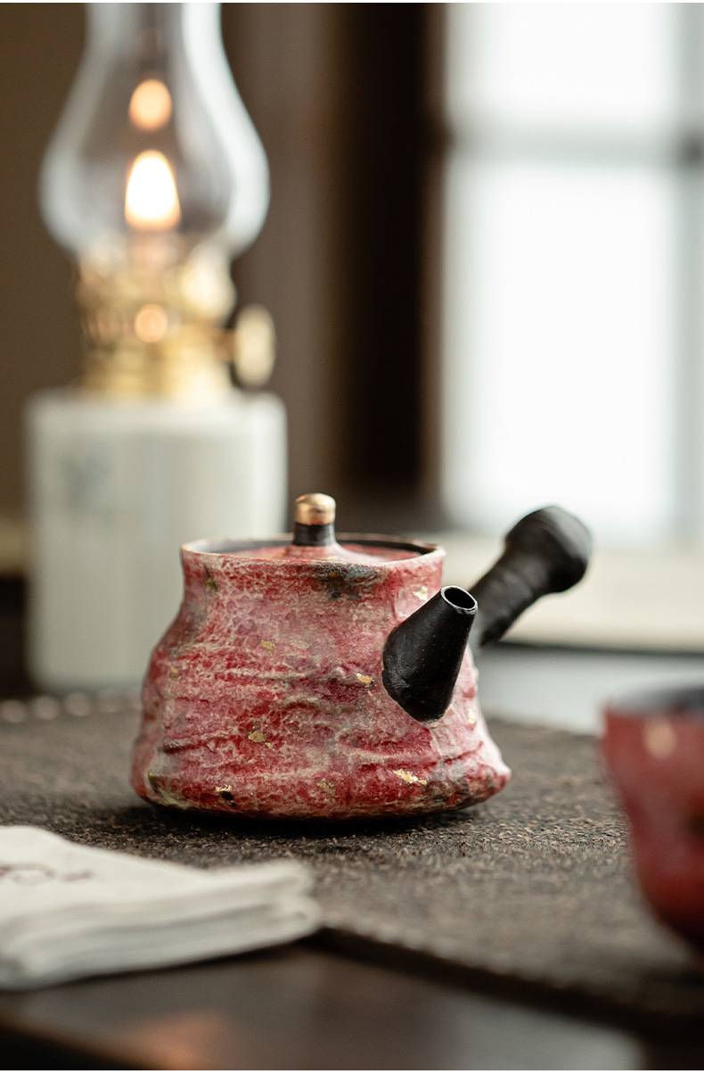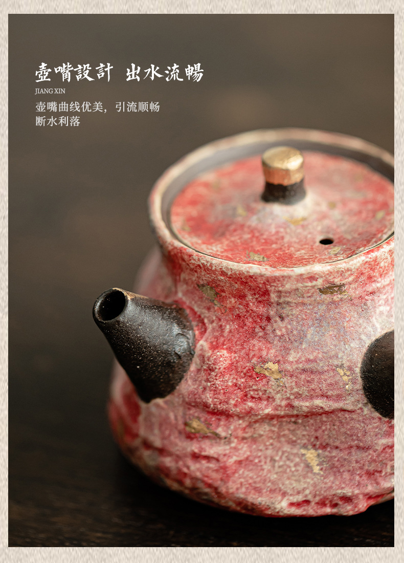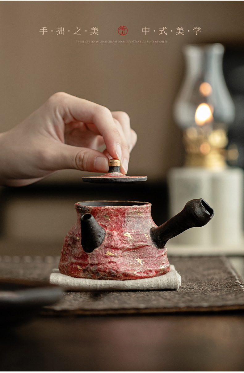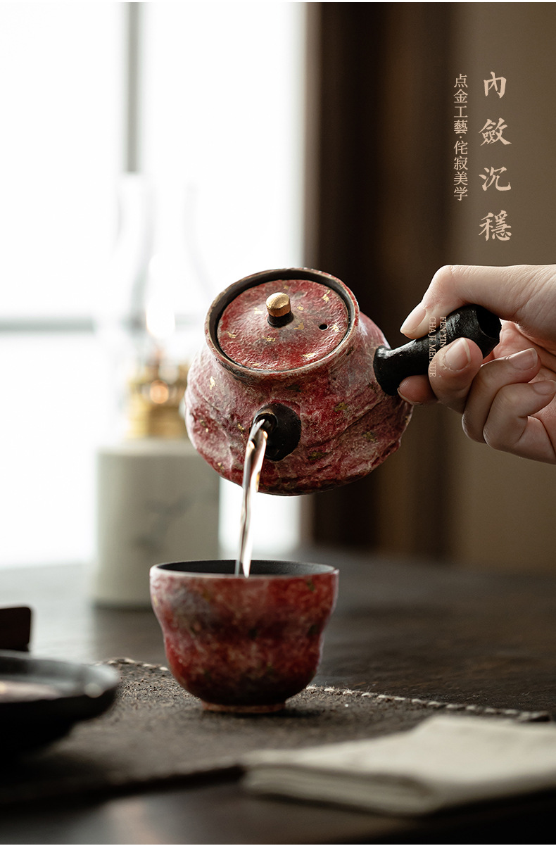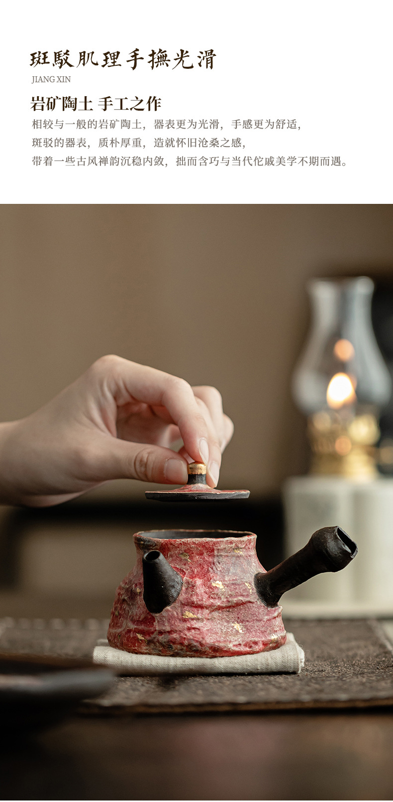 Wabijifeng Rock Mine Gốm vẽ râu gấp bên tay cầm ấm trà gốm sứ dung tích lớn sáng tạo ấm đơn bộ lọc hộp quà