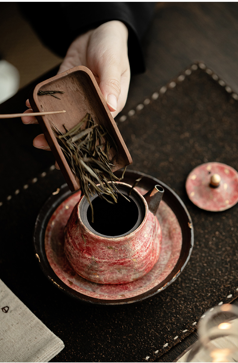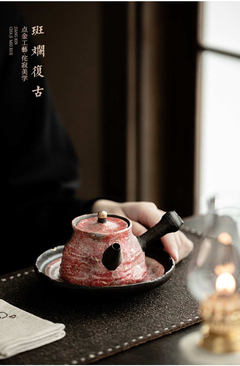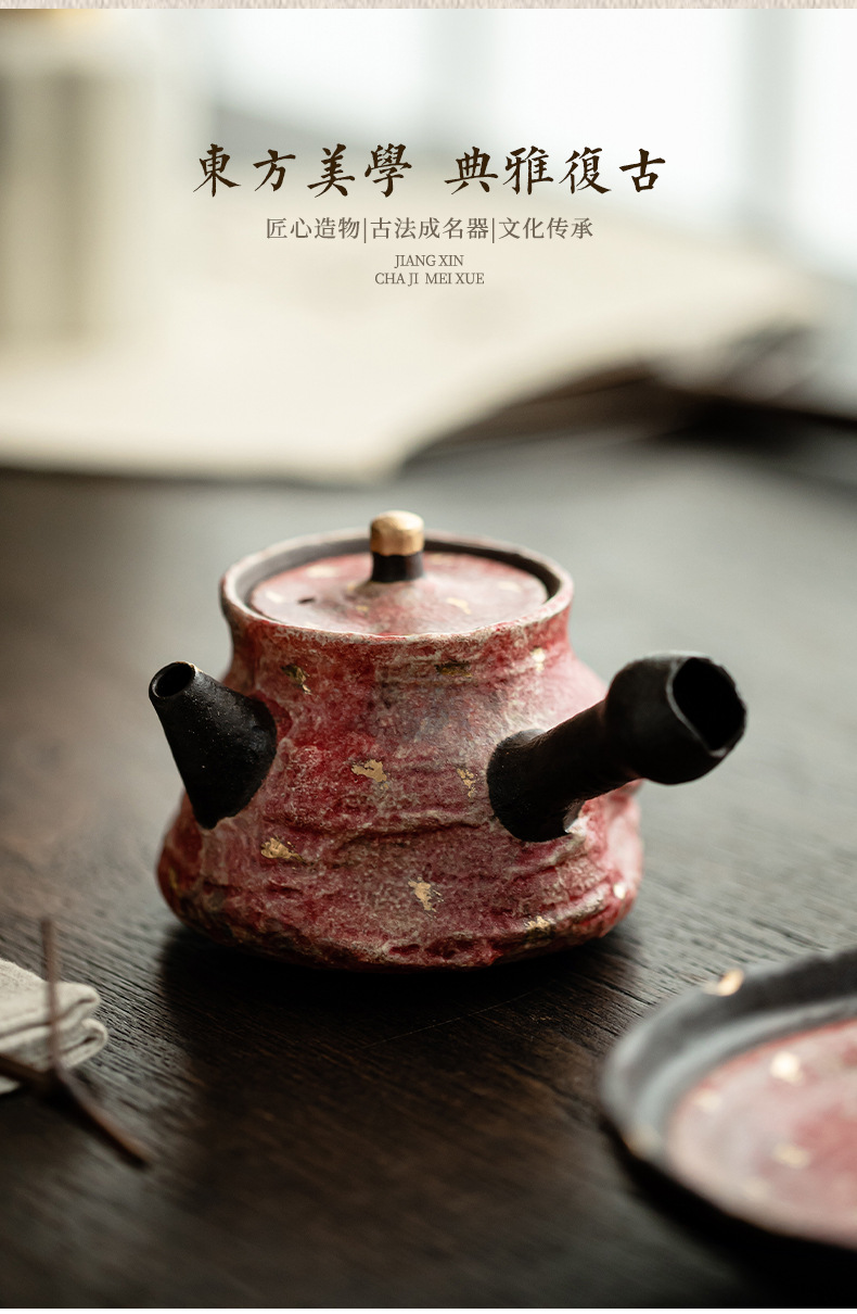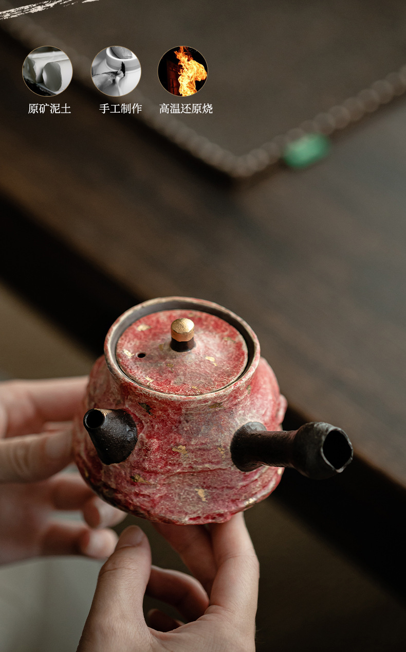 Wabijifeng Rock Mine Gốm vẽ râu gấp bên tay cầm ấm trà gốm sứ dung tích lớn sáng tạo ấm đơn bộ lọc hộp quà