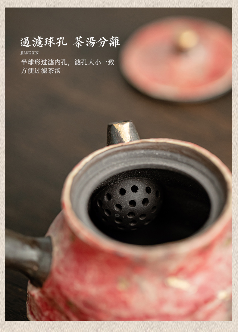 - Wabijifeng Rock Mine Gốm vẽ râu gấp bên tay cầm ấm trà gốm sứ dung tích lớn sáng tạo ấm đơn bộ lọc hộp quà