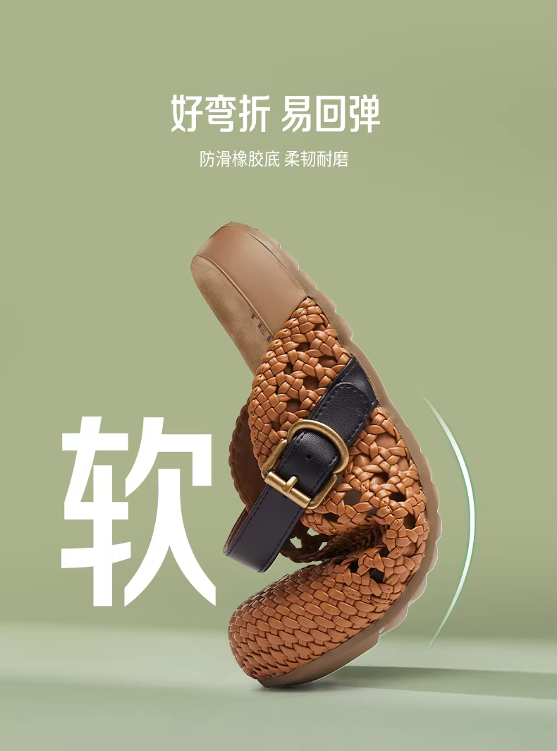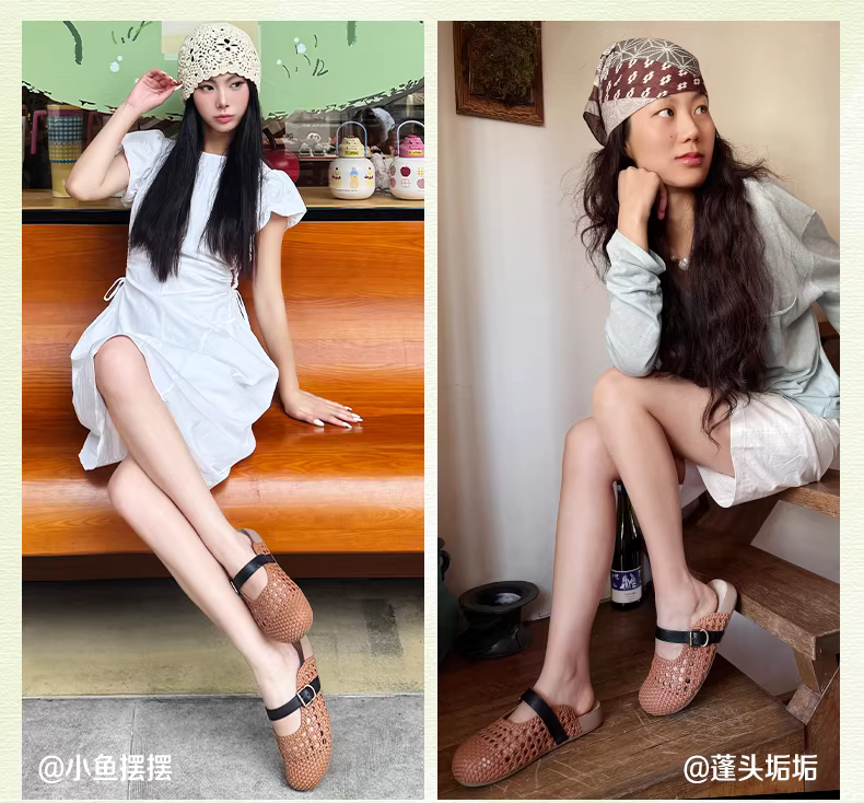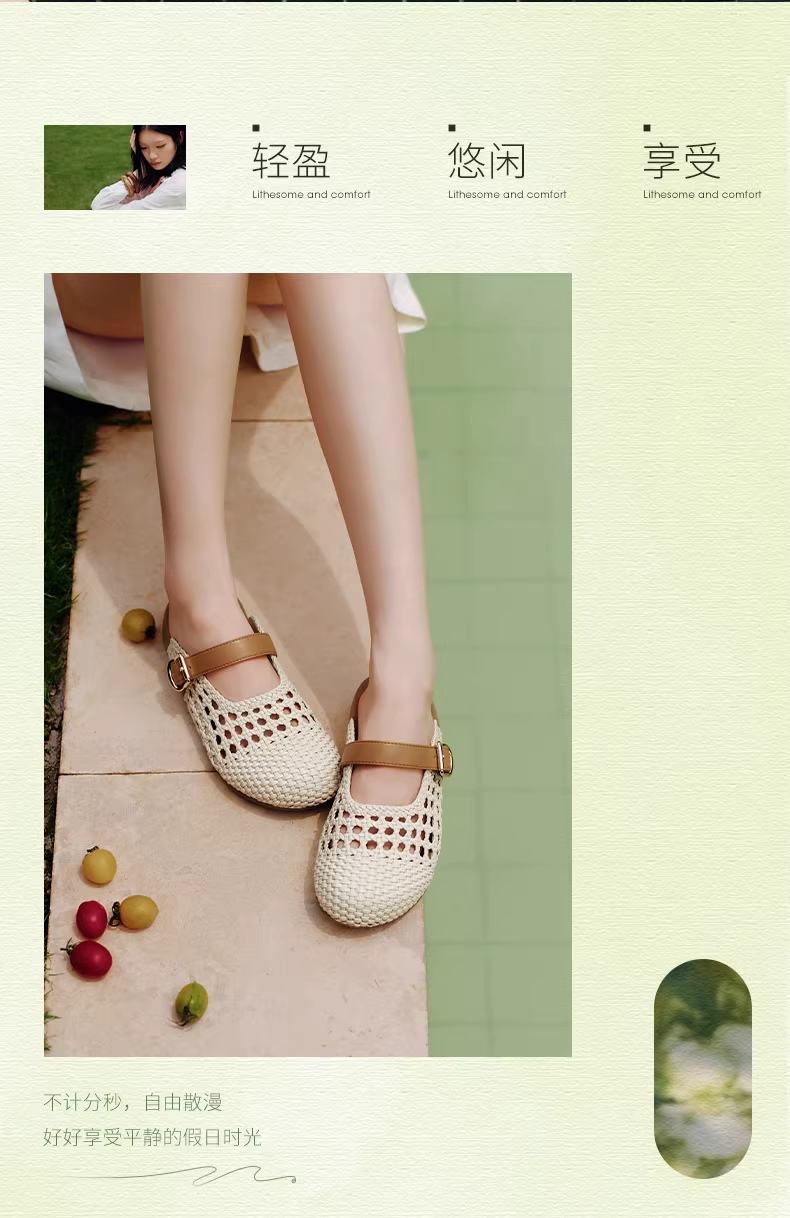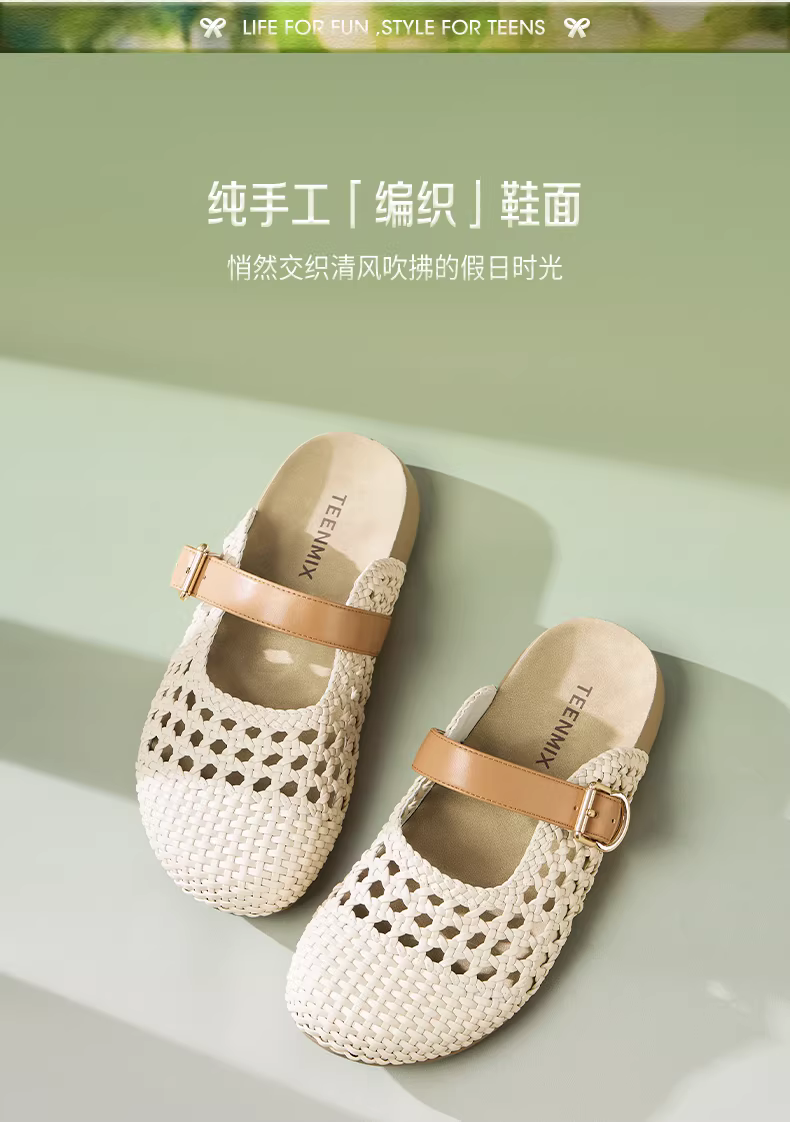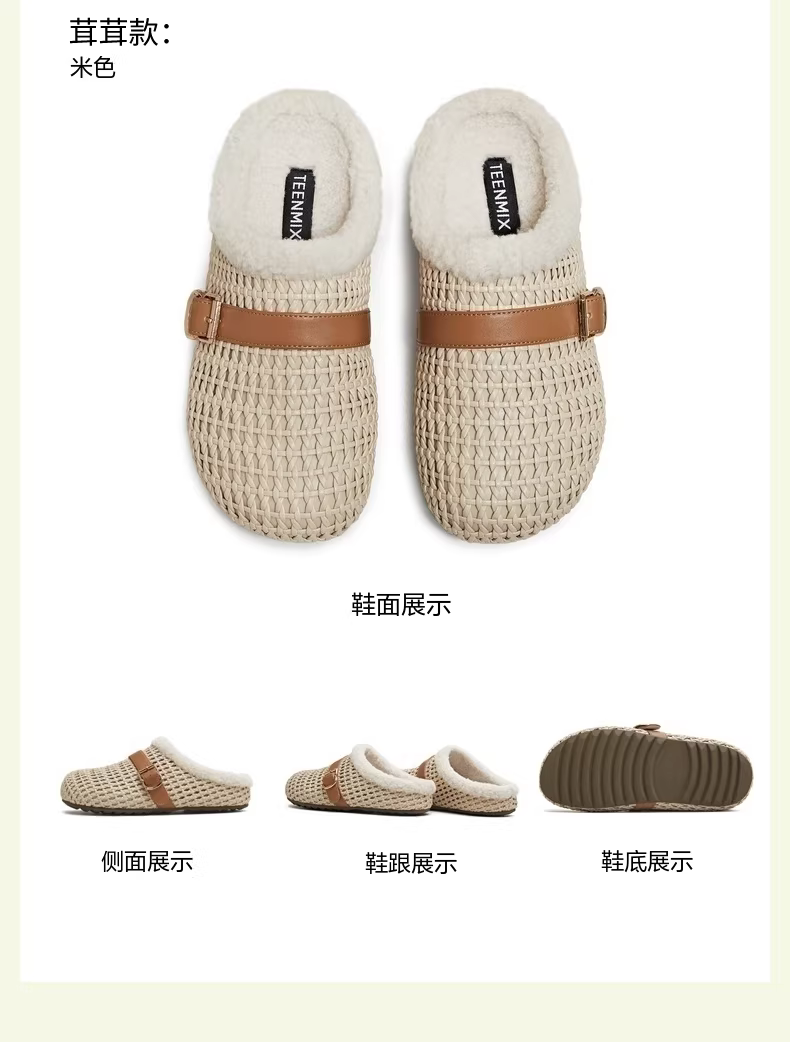 Wu Xuan Yi Tianmeiyi dệt dép nửa mũi kín kiểu Birkenstock đế dày, có đế dày, chất liệu cotton mềm mại dành cho nữ, thích hợp để mang ngoài trời, kiểu giày mule.