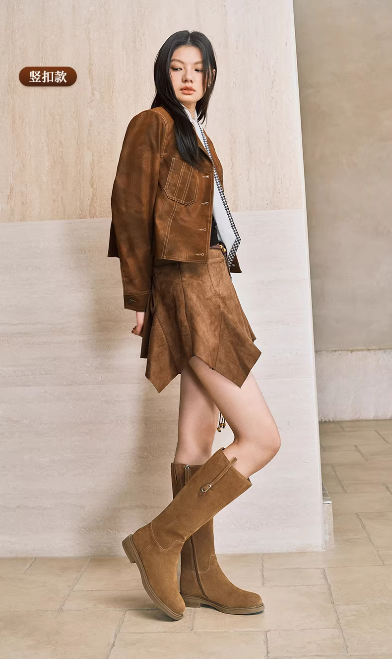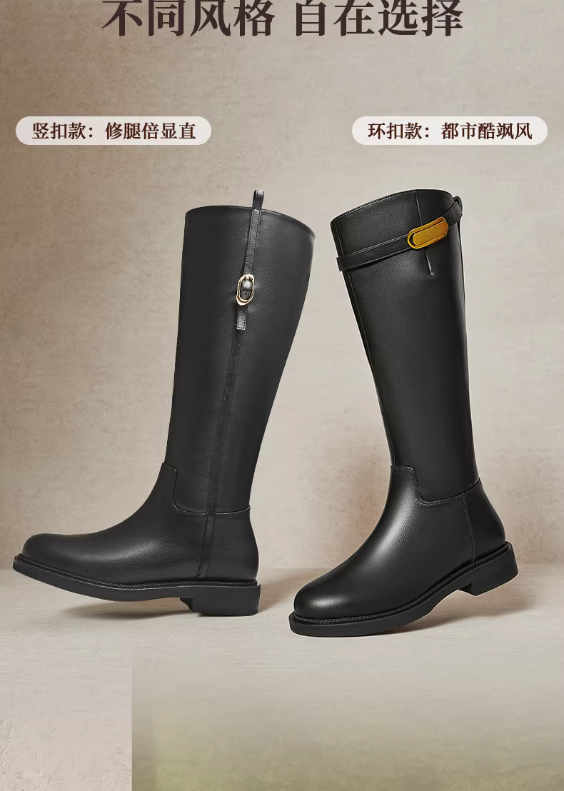- Wu Xuan Yi Tianmeiyi Giày bốt ngàn vàng Giày bốt hiệp sĩ đế dày cổ điển có lót lông cừu Giày bốt dài Giày nữ Giày bốt thời trang mới Giày bốt da