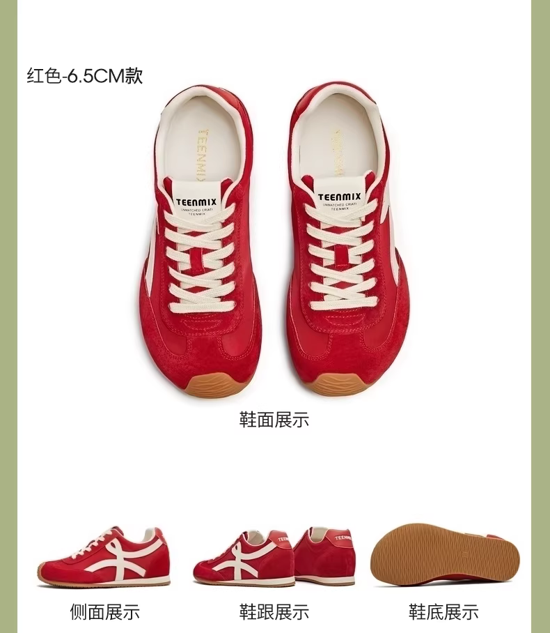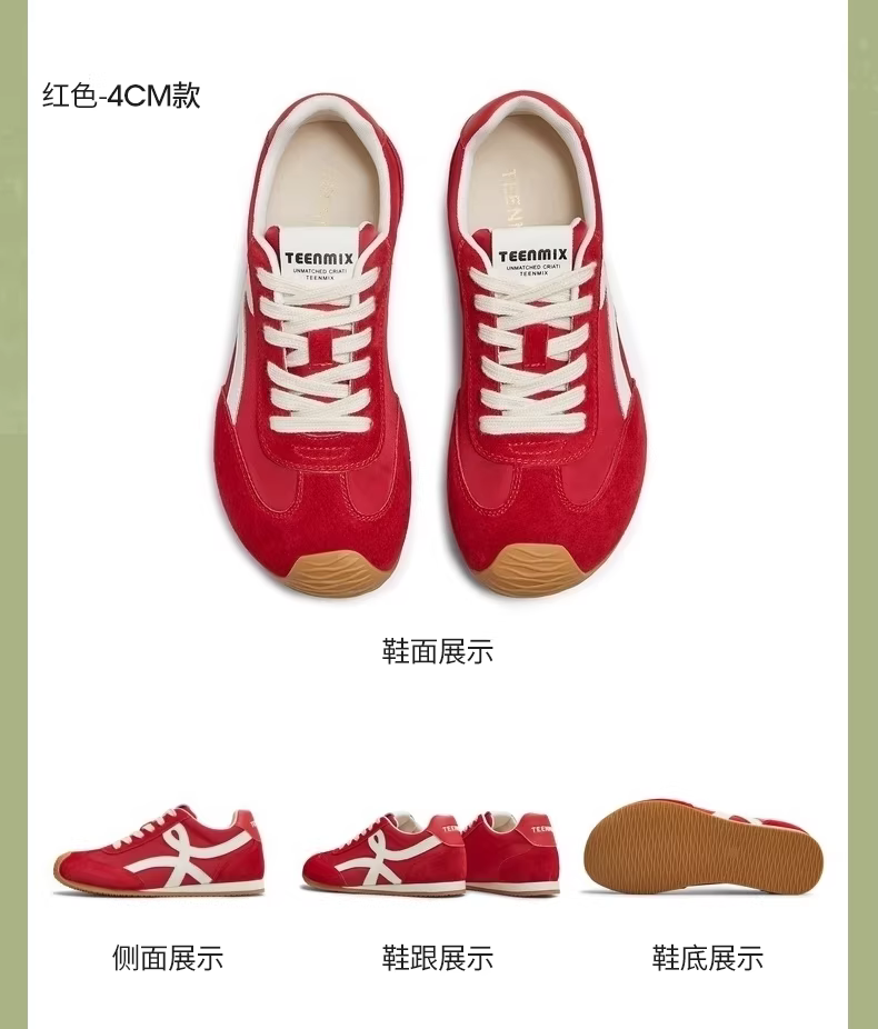 - Wu Xuan Yi Tianmeiyi kẹo bánh sandwich cầu vồng đế dày tăng chiều cao theo phong cách retro màu đỏ Giày tập Agande giày thể thao mùa thu dành cho nữ