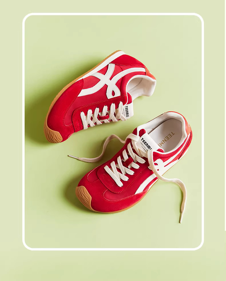 Wu Xuan Yi Tianmeiyi kẹo bánh sandwich cầu vồng đế dày tăng chiều cao theo phong cách retro màu đỏ Giày tập Agande giày thể thao mùa thu dành cho nữ