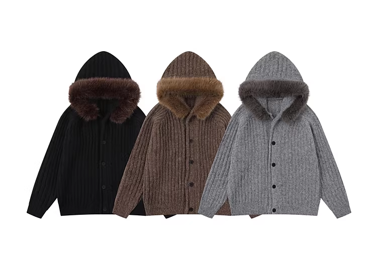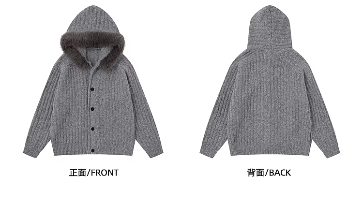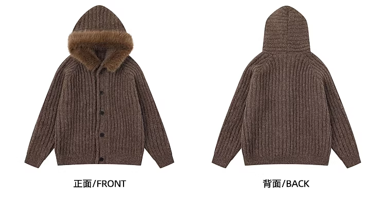 Wukong có sẵn áo cardigan cổ điển cài khuy có cổ lông và áo len có mũ dành cho nam và nữ, phong cách mùa thu thoải mái dành cho cặp đôi, chất liệu dệt kim.