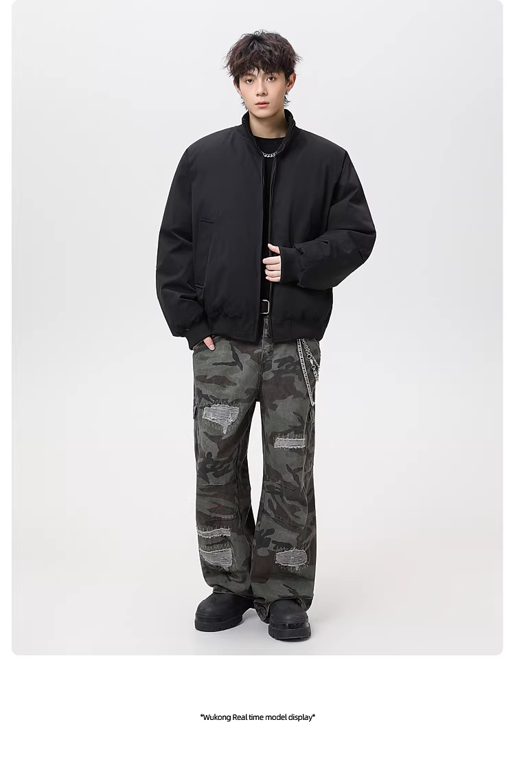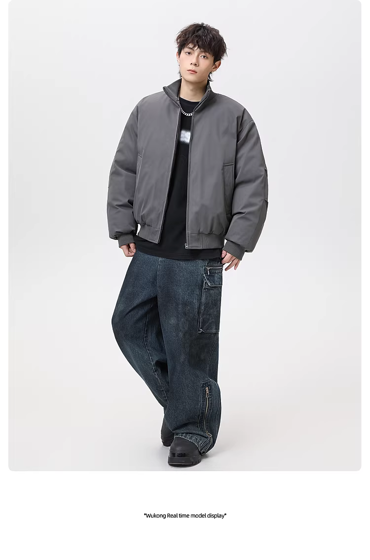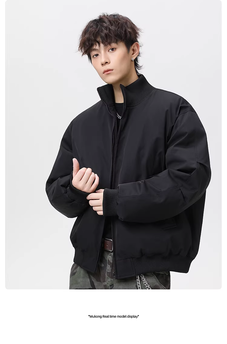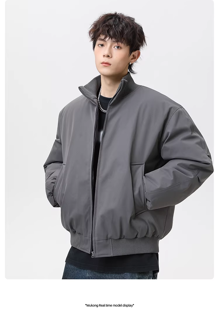 - Wukong có sẵn áo khoác cotton cổ đứng kiểu retro Mỹ dành cho nam và nữ, thương hiệu thời thượng, dáng rộng, áo khoác cotton ngắn ấm áp.