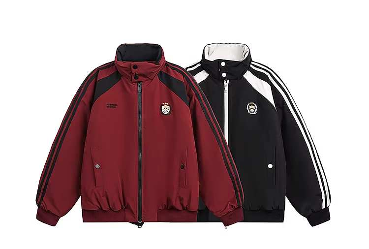 Wukong có sẵn áo khoác cotton cổ đứng sọc phối màu phong cách Mỹ thời thượng dành cho nam, phong cách đại học cổ điển, áo khoác cotton đa năng dành cho cặp đôi.