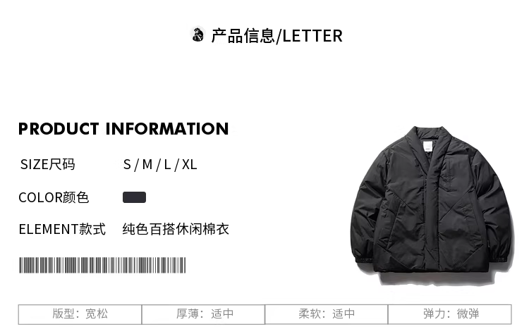 - Wukong có sẵn áo khoác cotton dày dặn cao cấp màu đen mùa đông dành cho nam, thương hiệu thời thượng, dáng rộng, ấm áp, áo khoác cotton đa năng dành cho cặp đôi.
