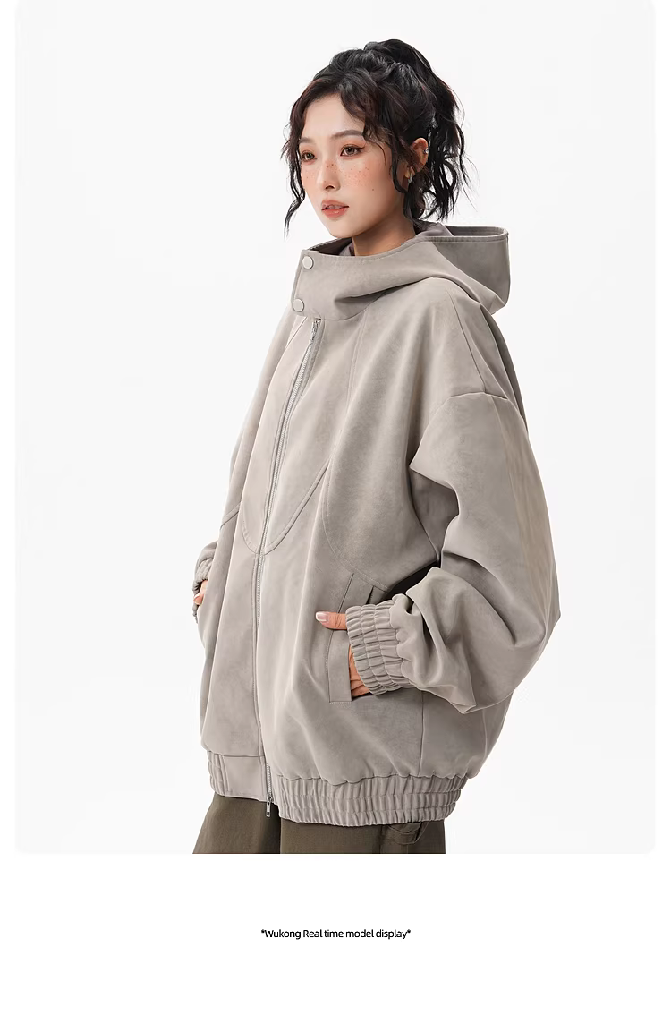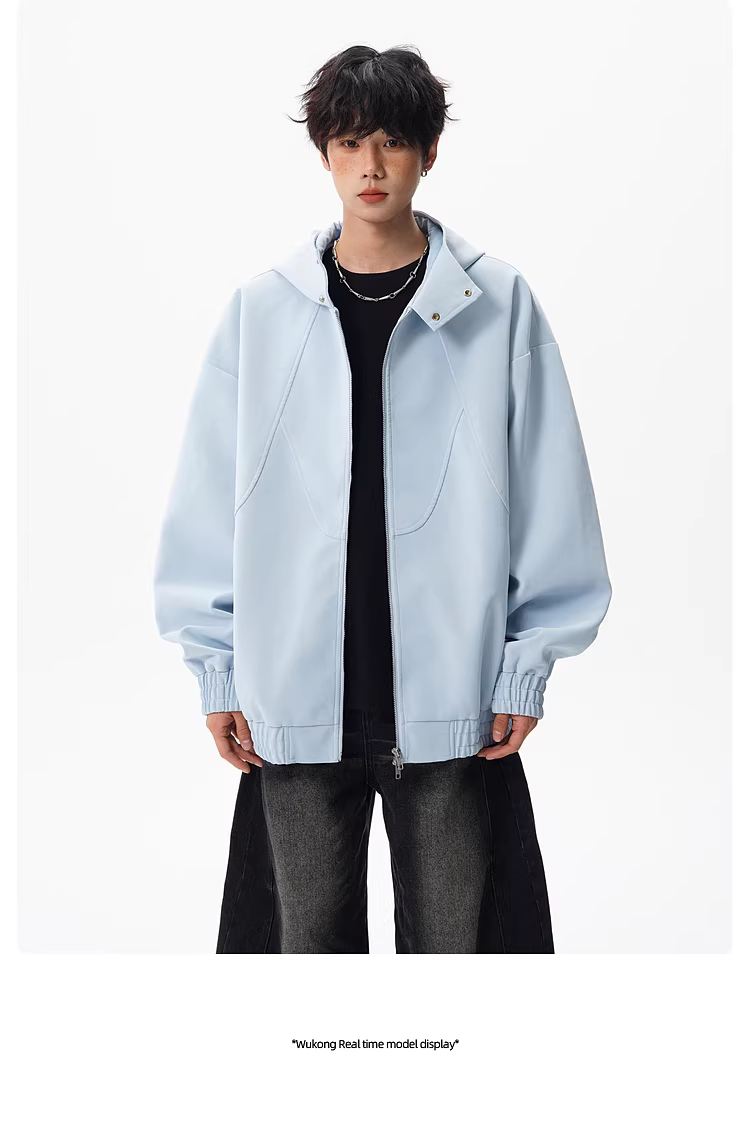 - Wukong có sẵn áo khoác da có mũ trùm đầu kiểu Mỹ cổ điển, phối màu theo phong cách patchwork, dành cho nam và nữ, áo khoác cặp đôi dáng rộng hợp thời trang mùa thu.