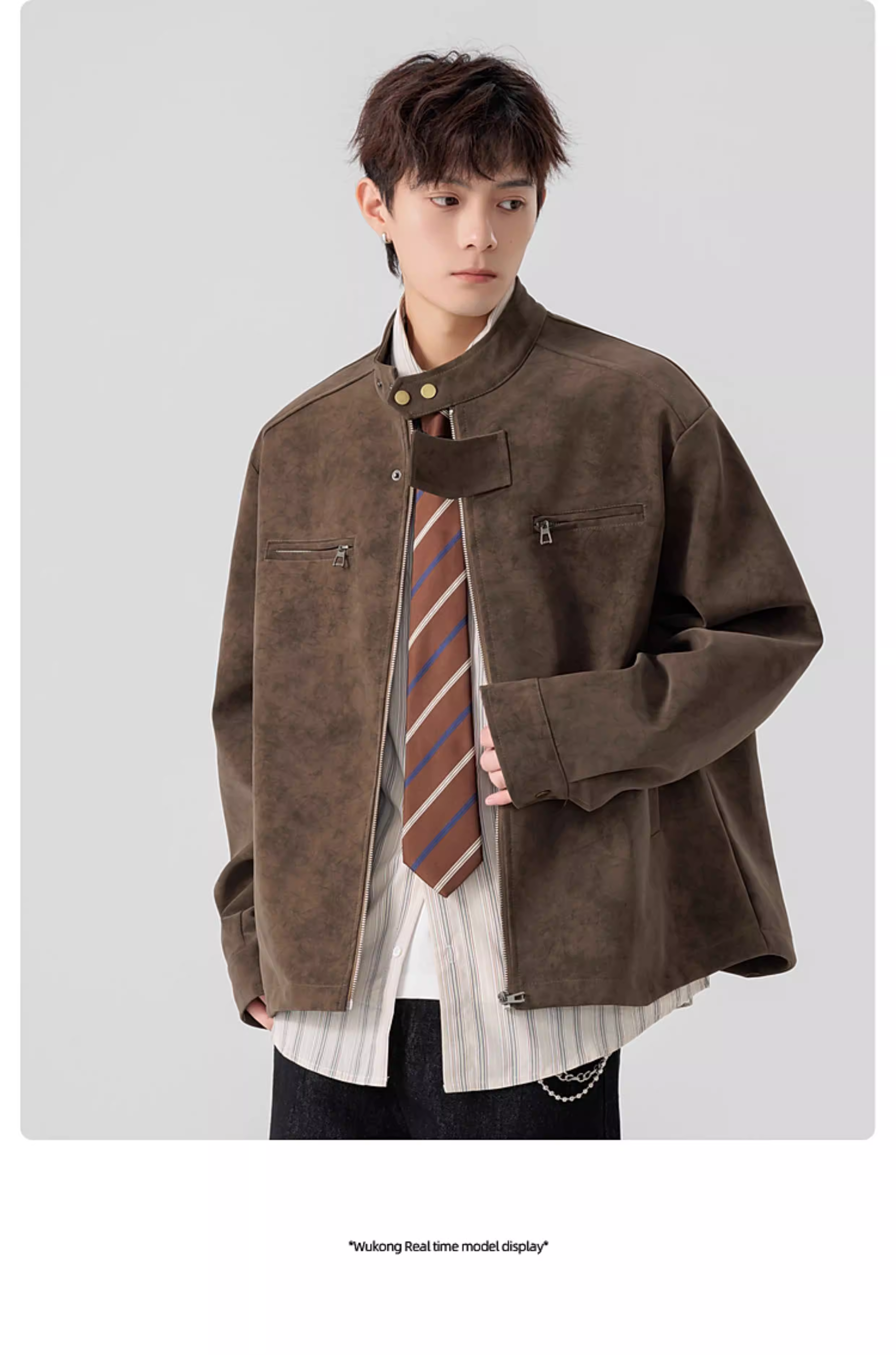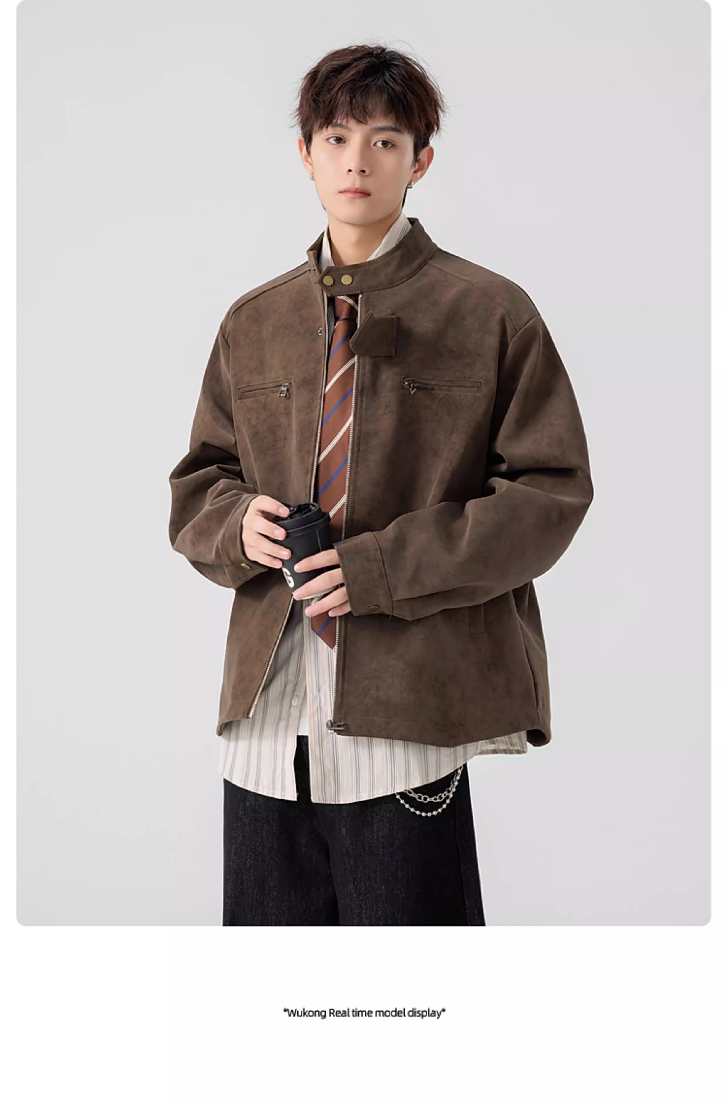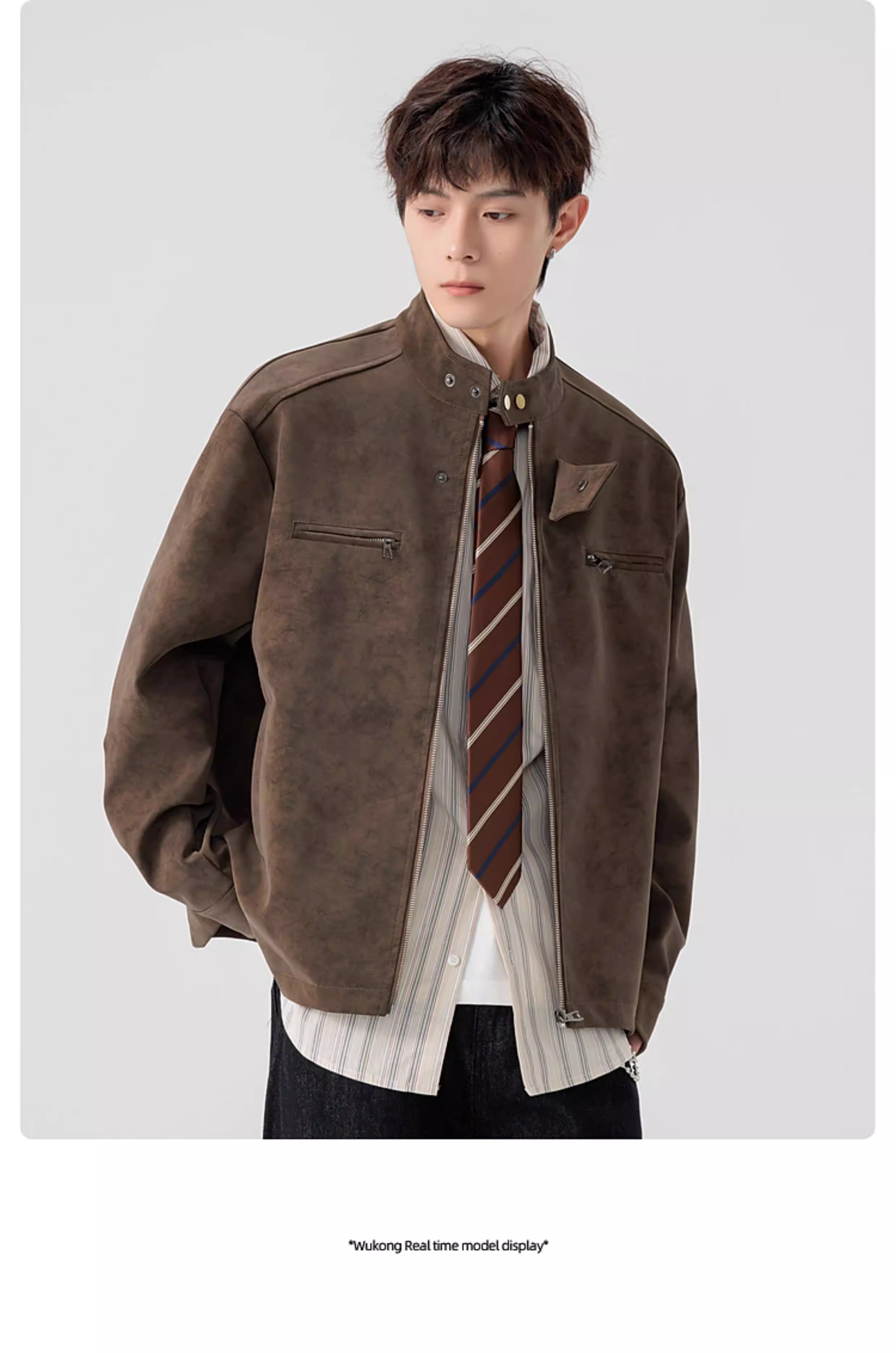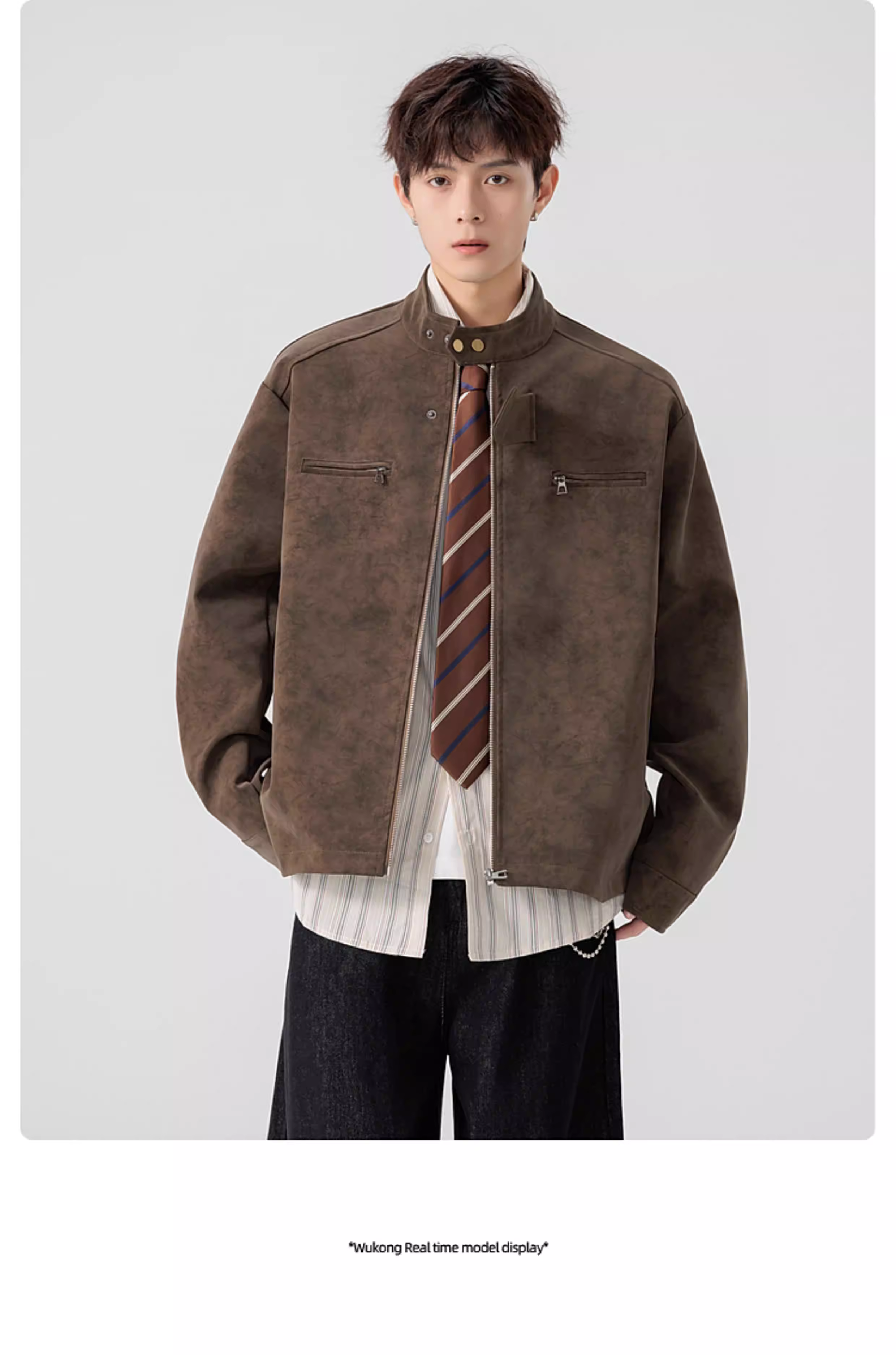 Wukong có sẵn áo khoác da PU cổ đứng phong cách retro Mỹ thời thượng dành cho nam và nữ, kiểu dáng rộng rãi, đa năng, áo khoác thường ngày dành cho các cặp đôi.