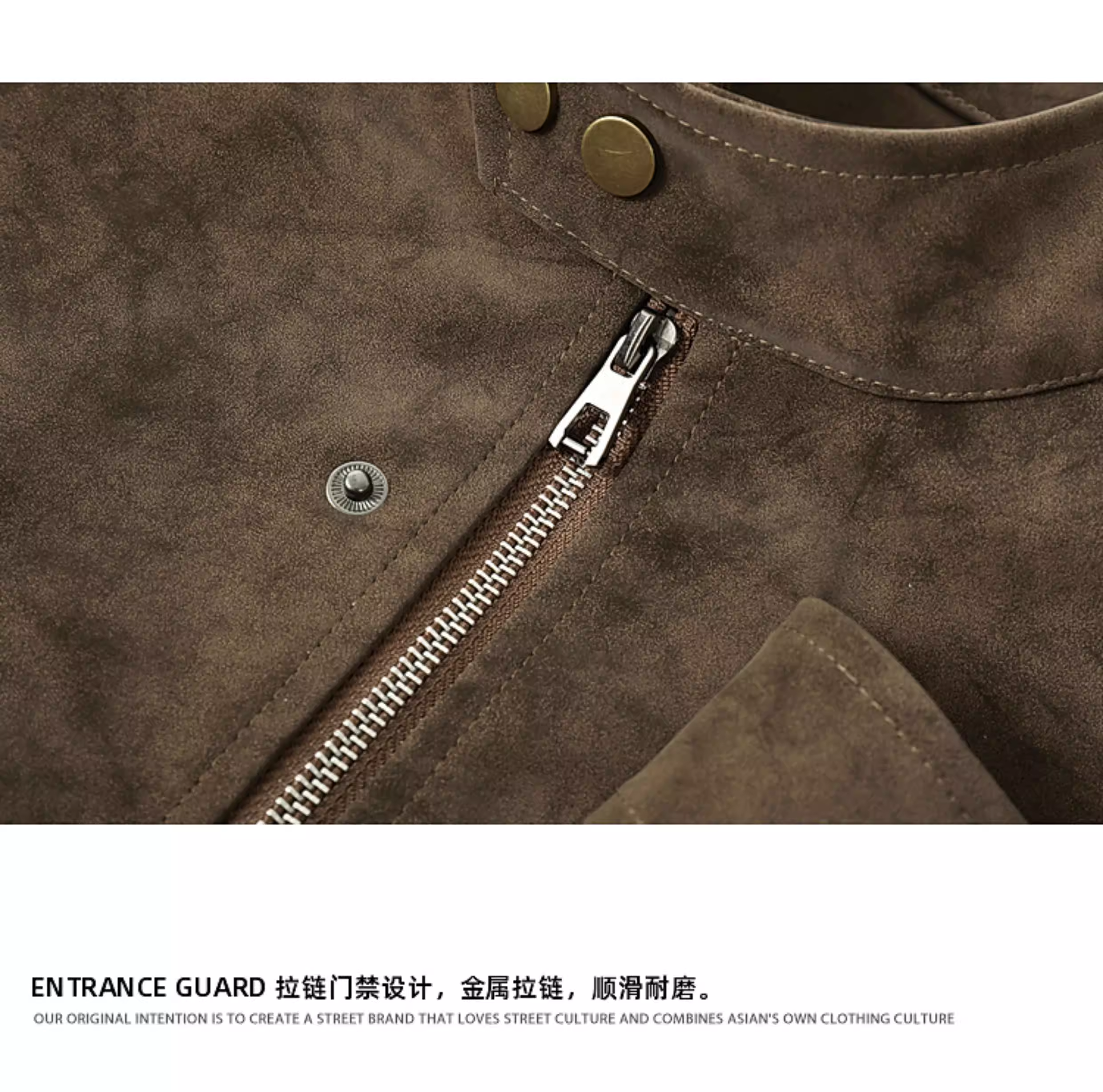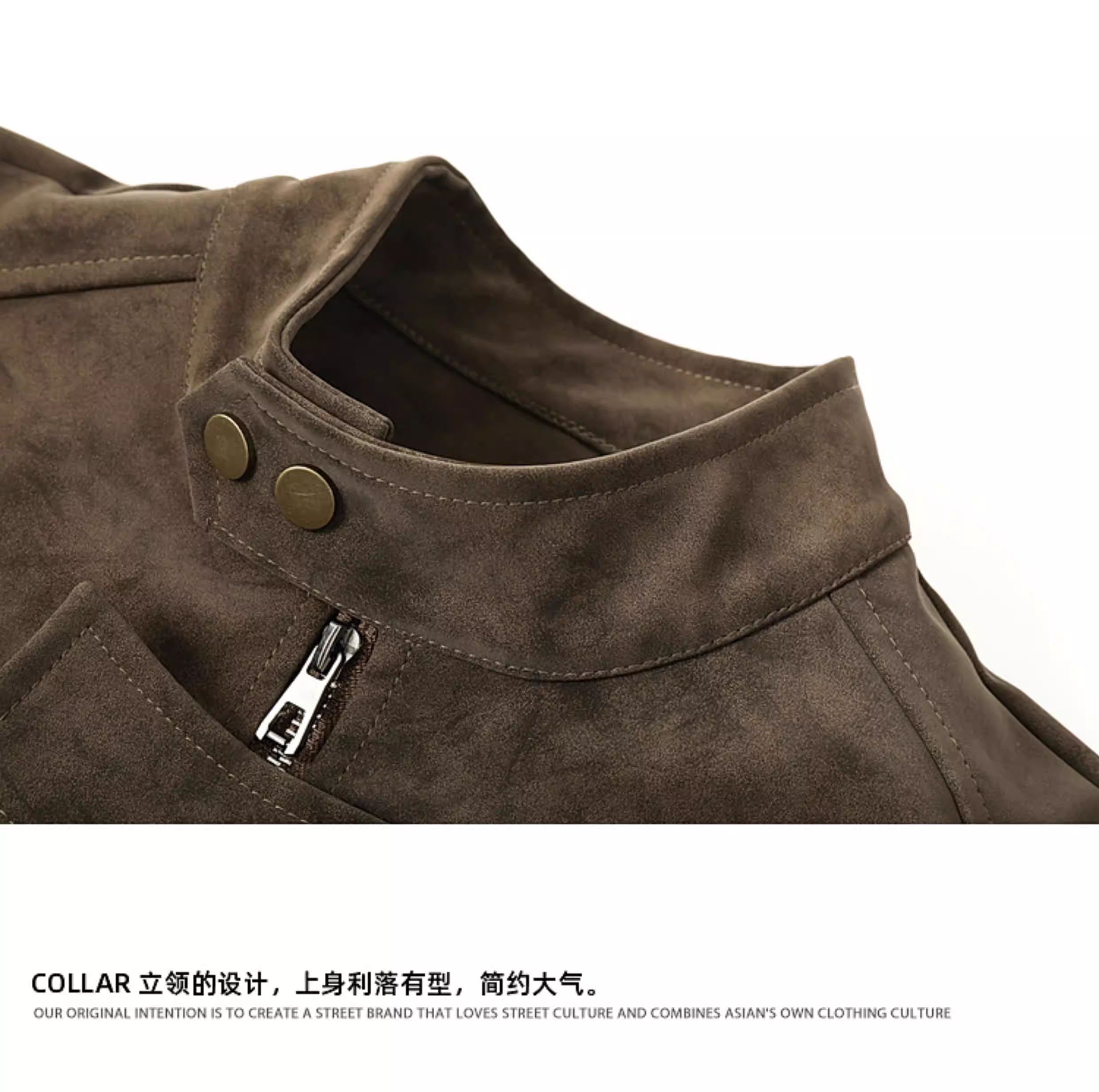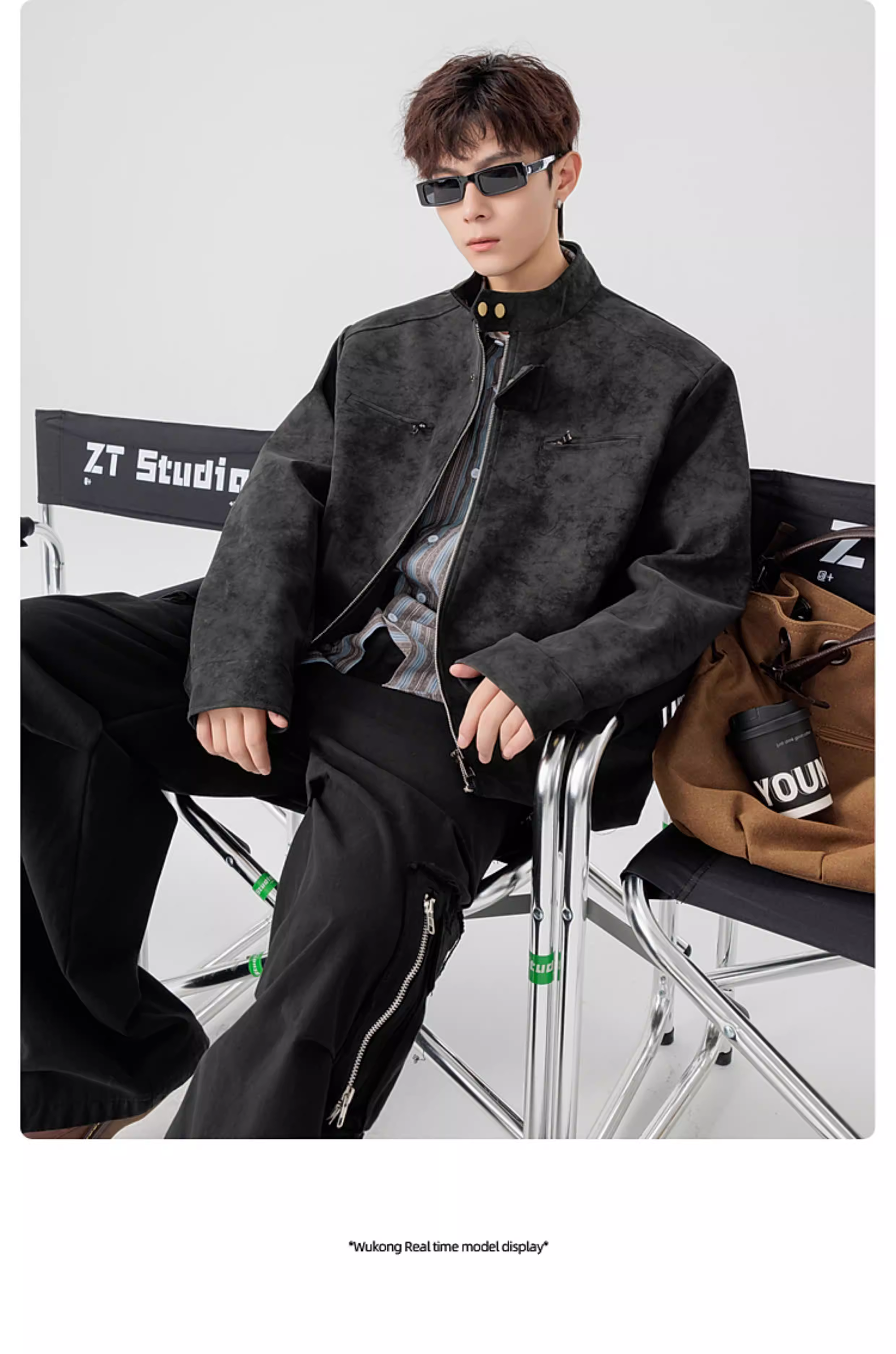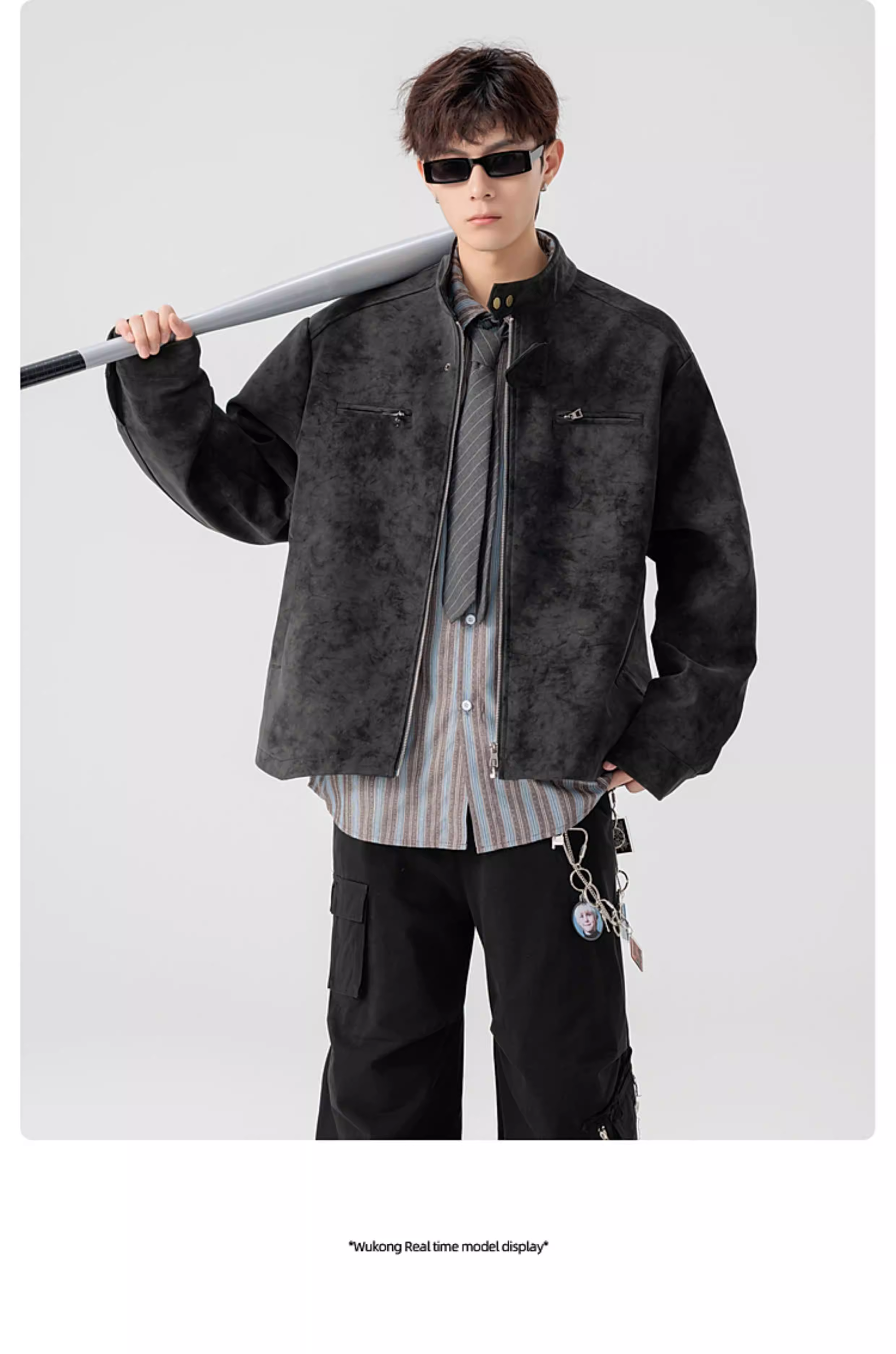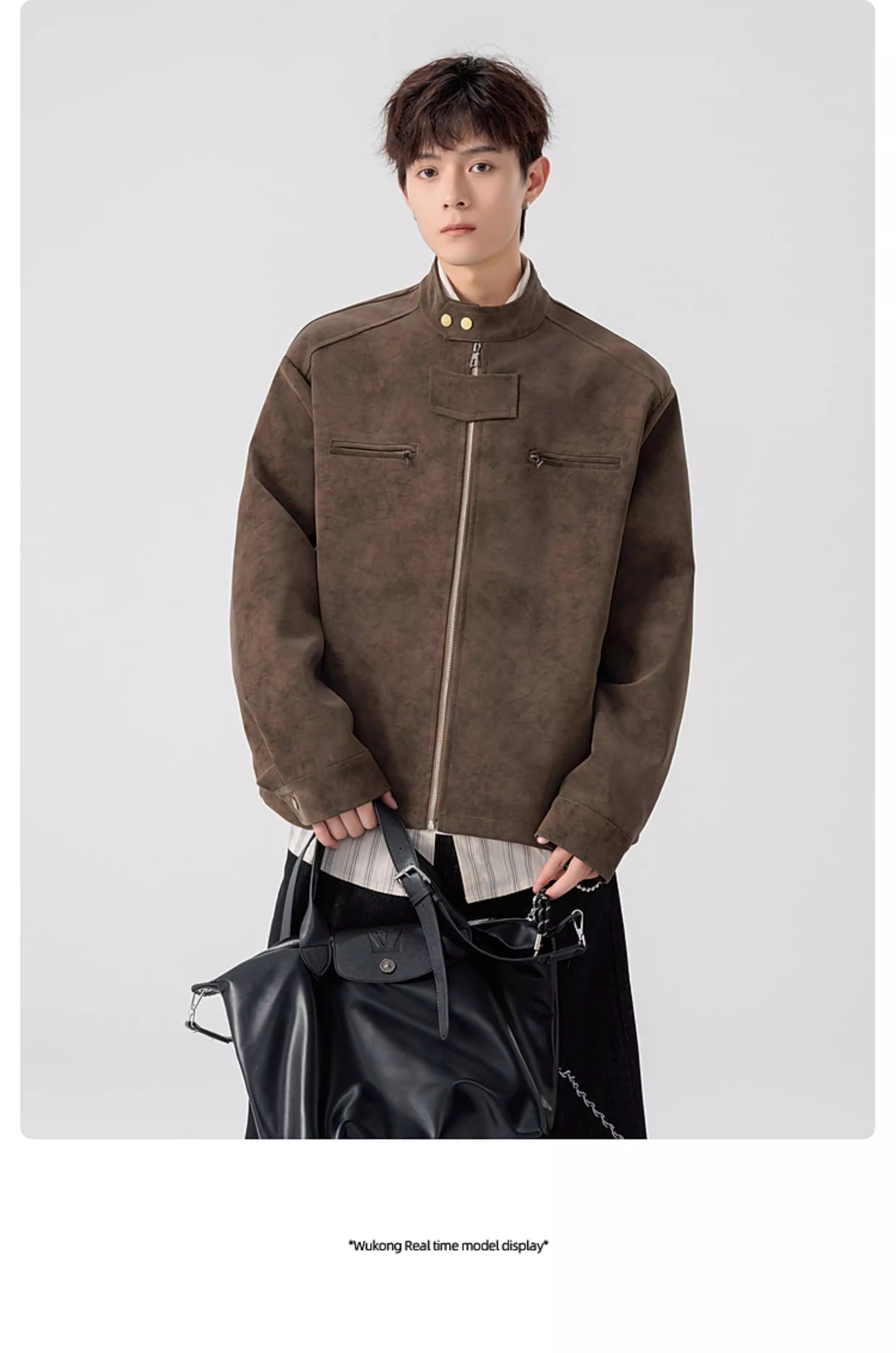 Wukong có sẵn áo khoác da PU cổ đứng phong cách retro Mỹ thời thượng dành cho nam và nữ, kiểu dáng rộng rãi, đa năng, áo khoác thường ngày dành cho các cặp đôi.