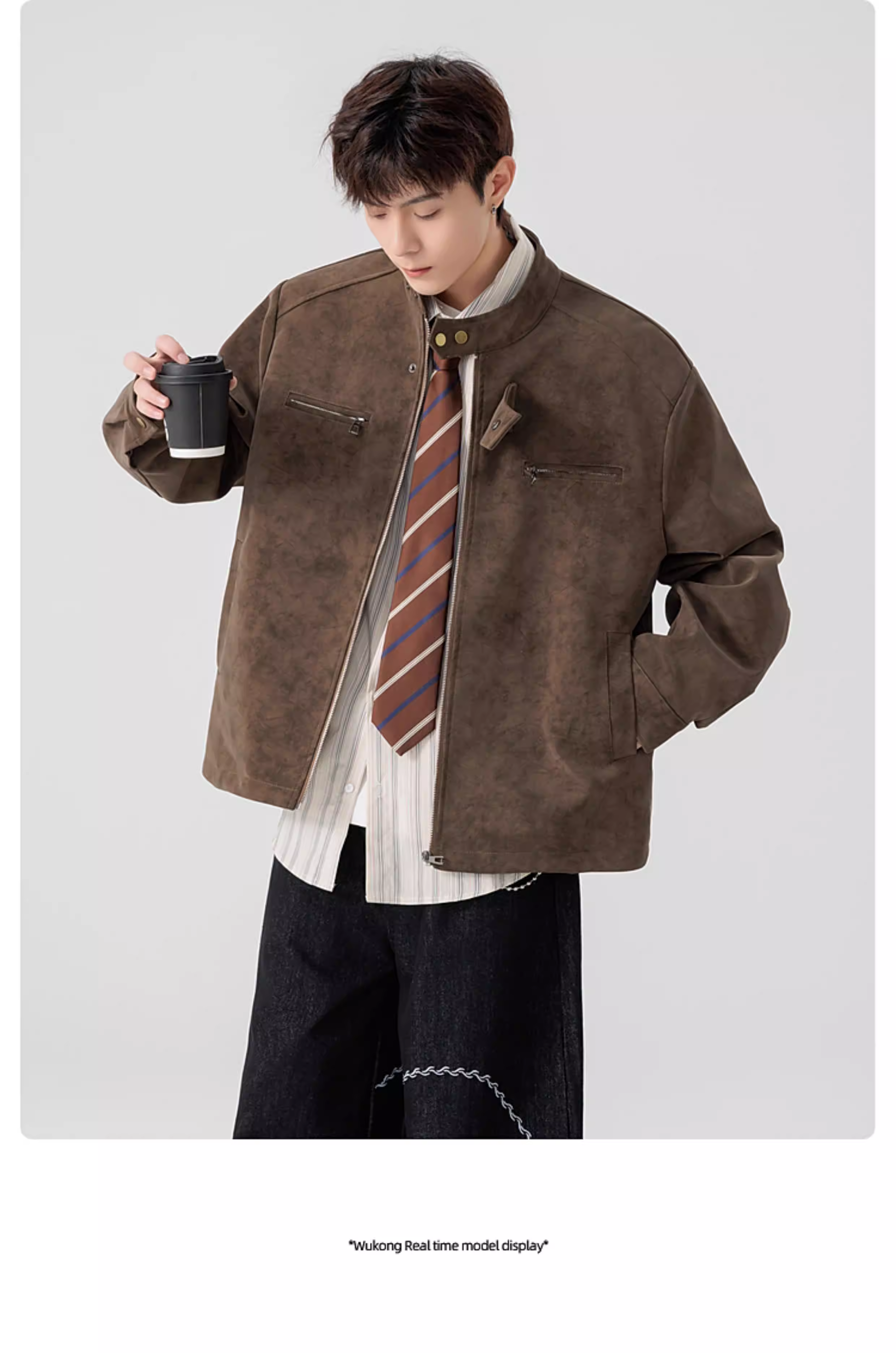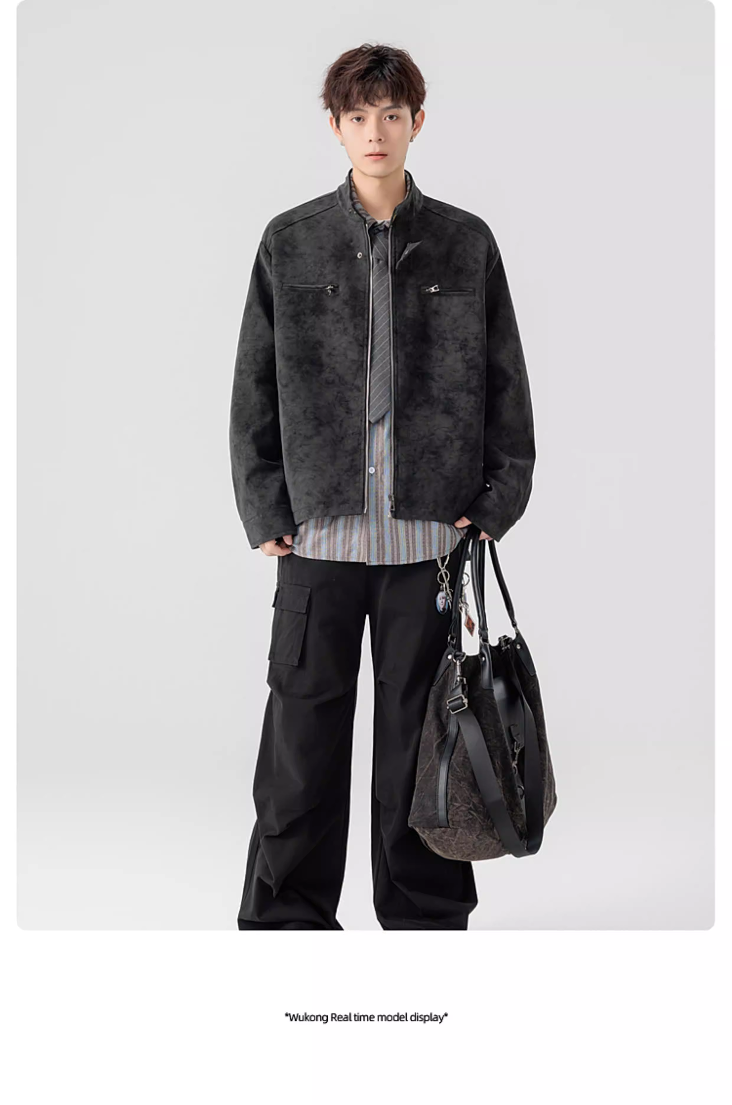 - Wukong có sẵn áo khoác da PU cổ đứng phong cách retro Mỹ thời thượng dành cho nam và nữ, kiểu dáng rộng rãi, đa năng, áo khoác thường ngày dành cho các cặp đôi.