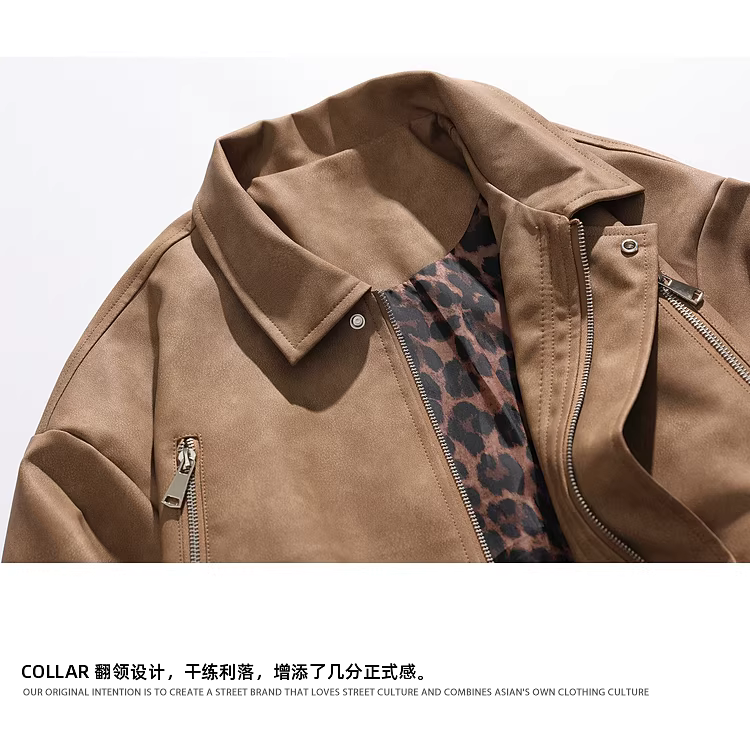 Wukong có sẵn áo khoác da PU kiểu biker cổ điển Mỹ, thiết kế phá cách, có khóa kéo, dành cho nam và nữ, kiểu dáng rộng rãi, đa năng, phong cách thường ngày.