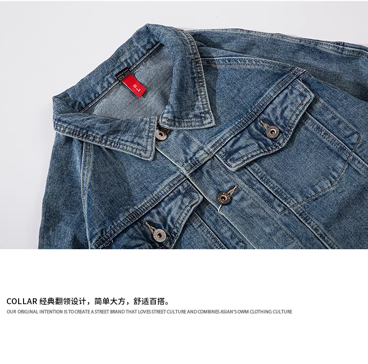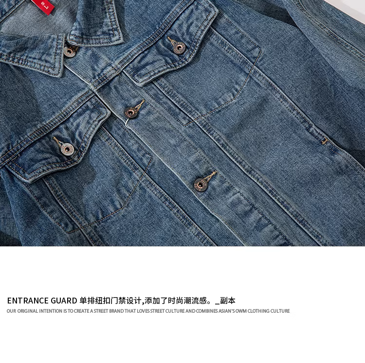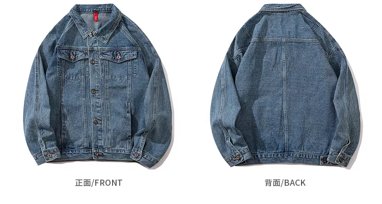 Wukong có sẵn áo khoác denim nam đã qua xử lý, kiểu dáng thời trang đường phố, dáng rộng, thoải mái, đa năng, thích hợp làm áo khoác công sở.