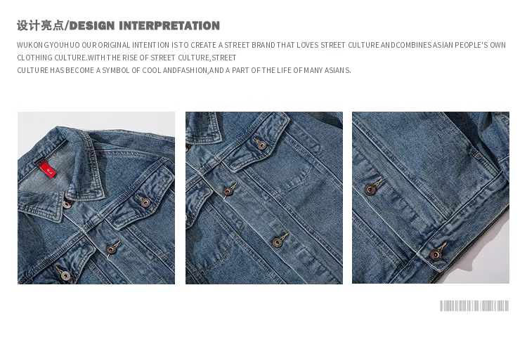 - Wukong có sẵn áo khoác denim nam đã qua xử lý, kiểu dáng thời trang đường phố, dáng rộng, thoải mái, đa năng, thích hợp làm áo khoác công sở.