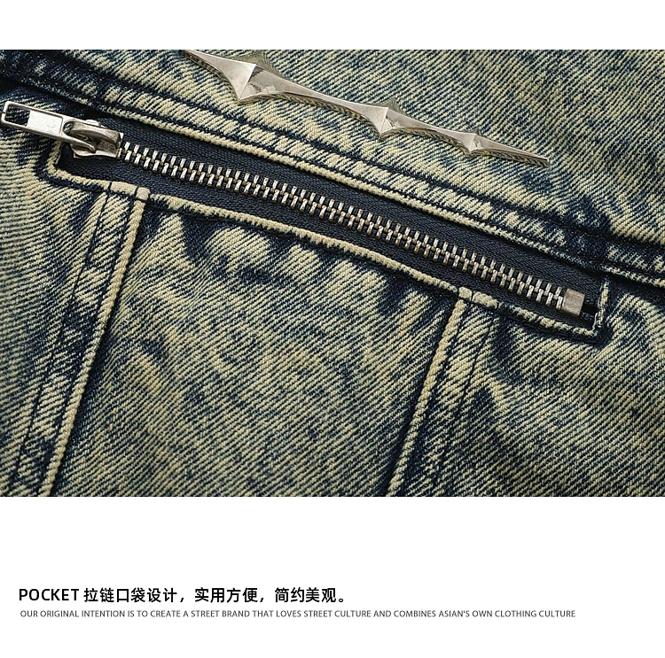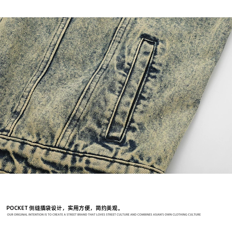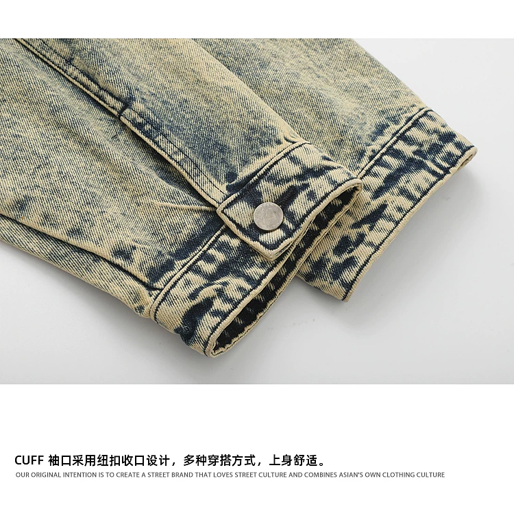 - Wukong có sẵn áo khoác denim ngắn kiểu Mỹ đã qua xử lý, có đệm vai dành cho nam, áo khoác biker thời thượng phong cách đường phố, áo khoác thiết kế phá cách.