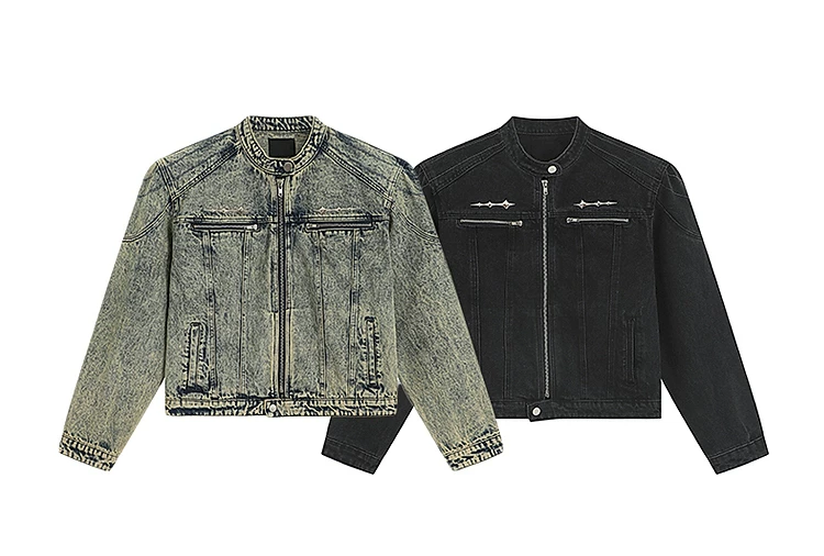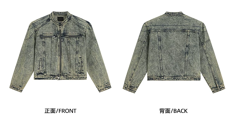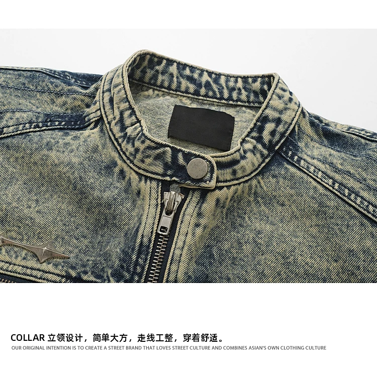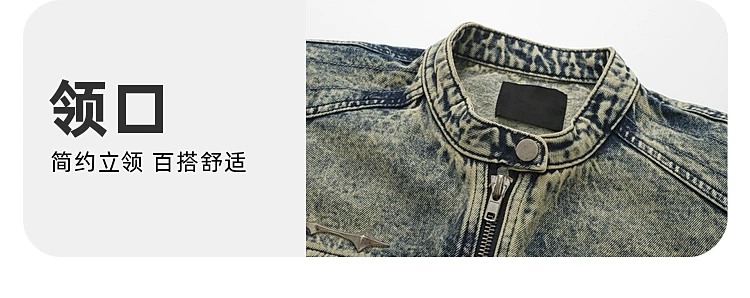 Wukong có sẵn áo khoác denim ngắn kiểu Mỹ đã qua xử lý, có đệm vai dành cho nam, áo khoác biker thời thượng phong cách đường phố, áo khoác thiết kế phá cách.
