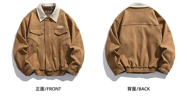 Wukong có sẵn áo khoác nam chất liệu da lộn thêu kiểu Mỹ thời thượng, áo khoác mùa thu phong cách đường phố đa năng, áo khoác thường ngày dành cho cặp đôi.