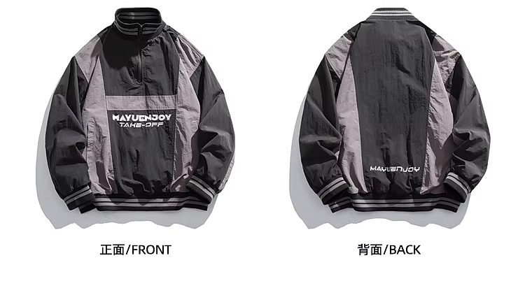 Wukong có sẵn áo khoác nam cổ đứng nửa khóa kéo, phối màu vintage mùa thu, thương hiệu thời thượng, dáng rộng, đa năng.