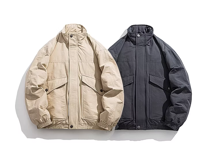 Wukong có sẵn áo khoác phao nam kiểu Harrington cổ đứng, túi lớn, thời trang mùa đông, phong cách retro thập niên 90, chất liệu lông cừu ấm áp, kiểu áo khoác công nhân.