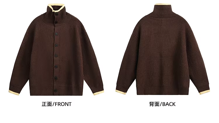 Wukong có sẵn áo len cardigan cổ cao cài nút phối màu vintage mùa thu dành cho nam, phong cách Hàn Quốc, áo khoác dệt kim Melard kiểu lười.