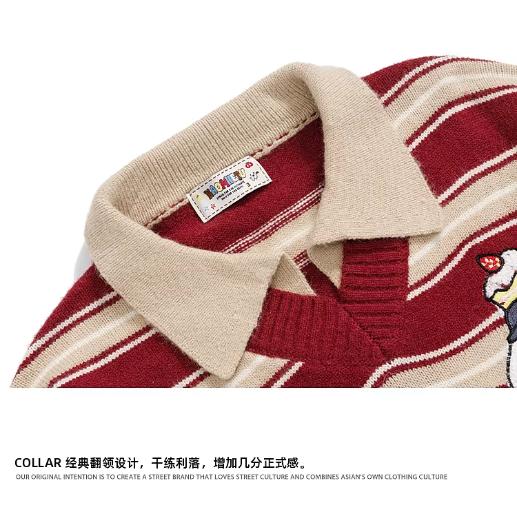 Wukong có sẵn áo len cổ POLO thêu sọc kiểu cổ điển dành cho nam, áo len dệt kim dáng rộng đa năng, hợp thời trang, kiểu cặp đôi.