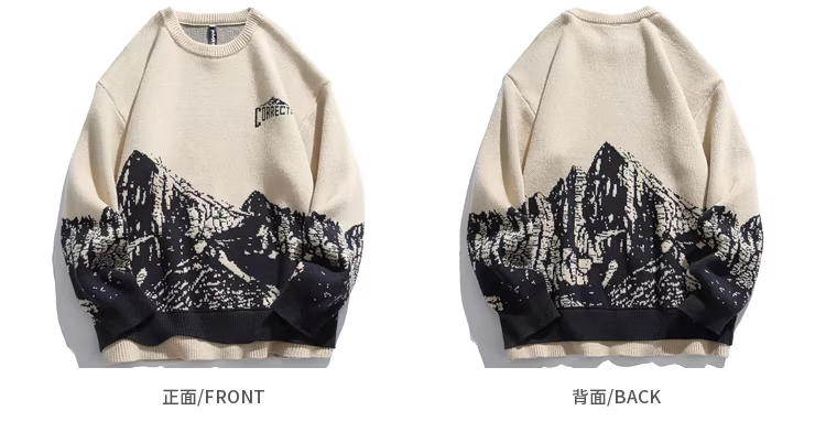 Wukong có sẵn áo len cổ tròn họa tiết núi tuyết cổ điển Nhật Bản dành cho nam, thương hiệu thời thượng, dáng rộng, áo dệt kim đa năng dành cho cặp đôi.