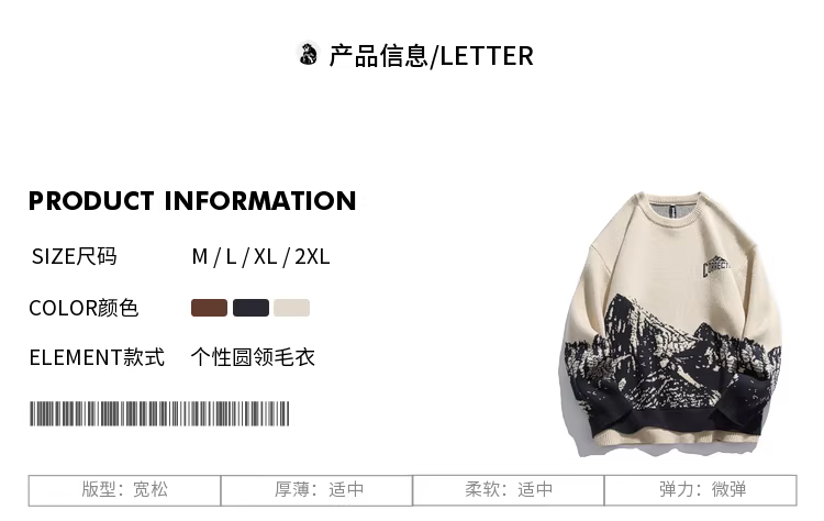 - Wukong có sẵn áo len cổ tròn họa tiết núi tuyết cổ điển Nhật Bản dành cho nam, thương hiệu thời thượng, dáng rộng, áo dệt kim đa năng dành cho cặp đôi.