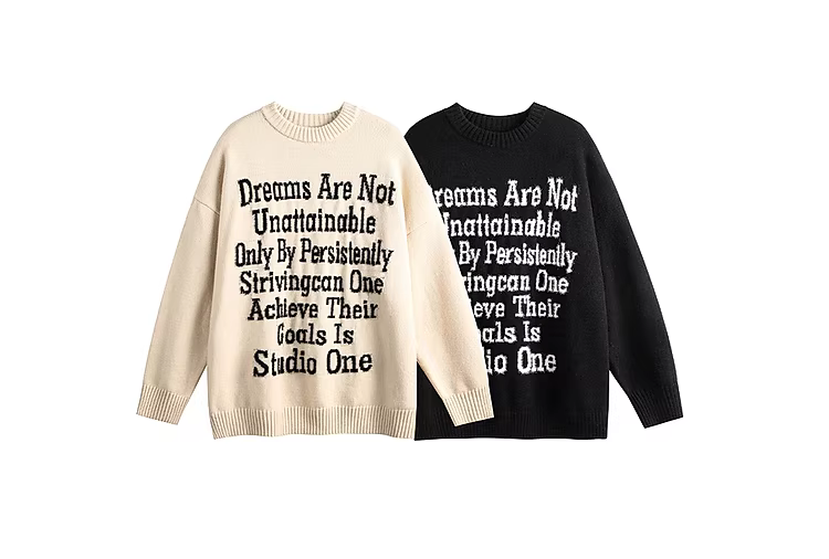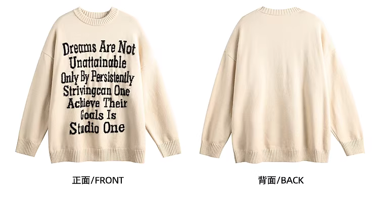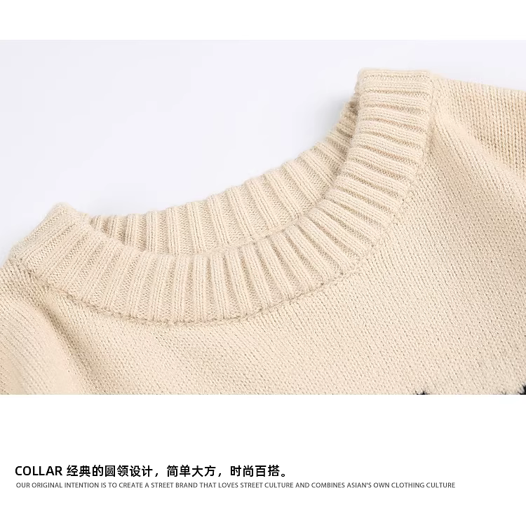 - Wukong có sẵn áo len dệt kim cổ tròn kiểu chữ retro Mỹ dành cho nam, áo len cặp đôi dáng rộng thời thượng mùa thu, đa năng.