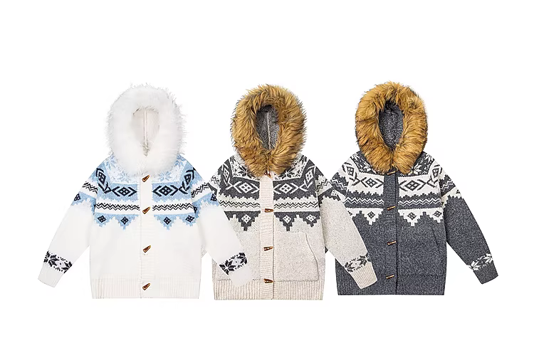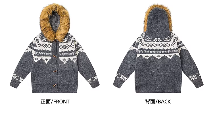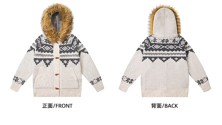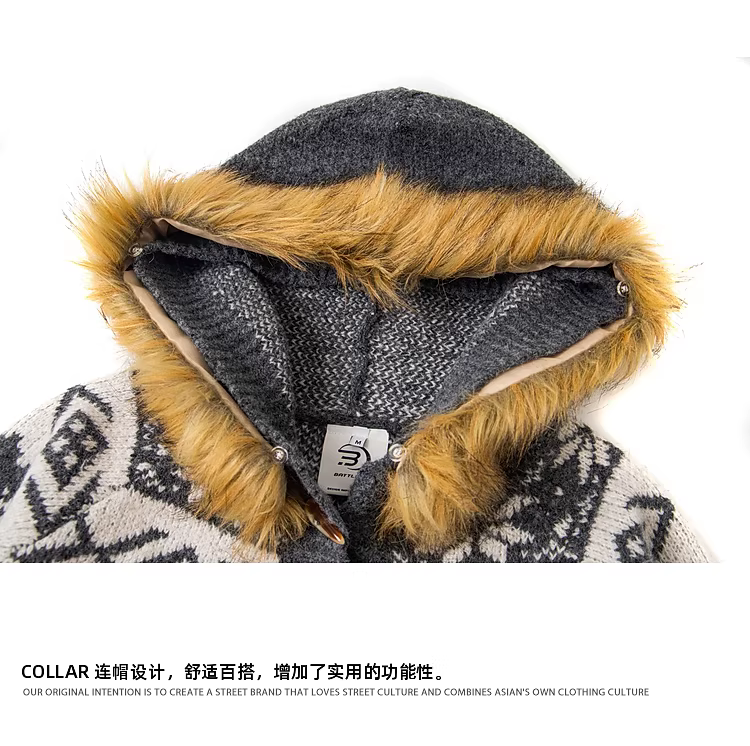 Wukong có sẵn áo len nam cổ lông tháo rời kiểu cổ điển mùa đông, chất liệu len Fair Isle, thương hiệu thời thượng, dáng rộng, kiểu cardigan cài nút.