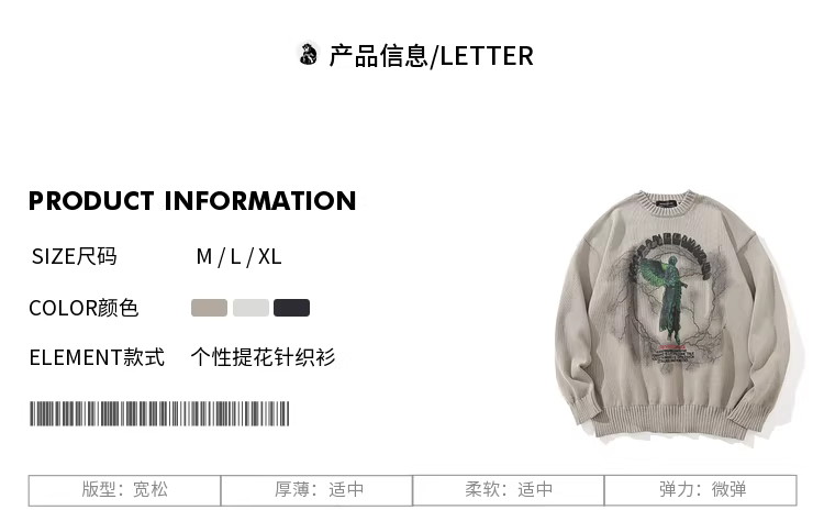 - Wukong có sẵn áo len nam cổ tròn in họa tiết graffiti phong cách đường phố Mỹ, kiểu dáng rộng rãi, thoải mái, phong cách thời trang, áo len chui đầu kiểu BF.