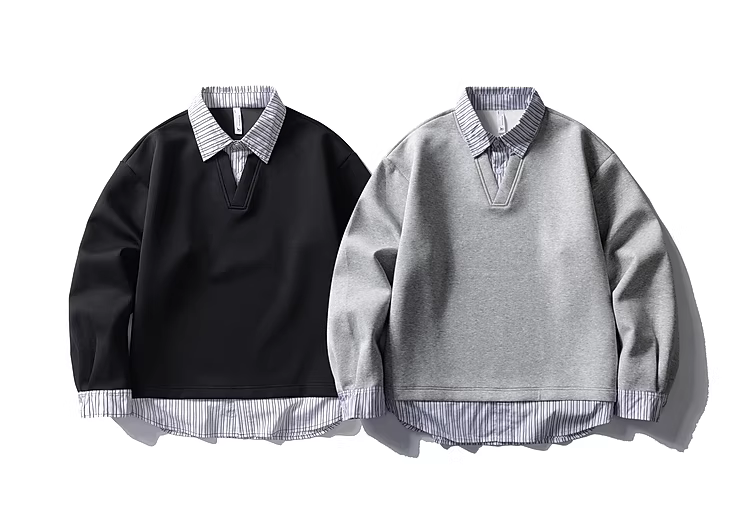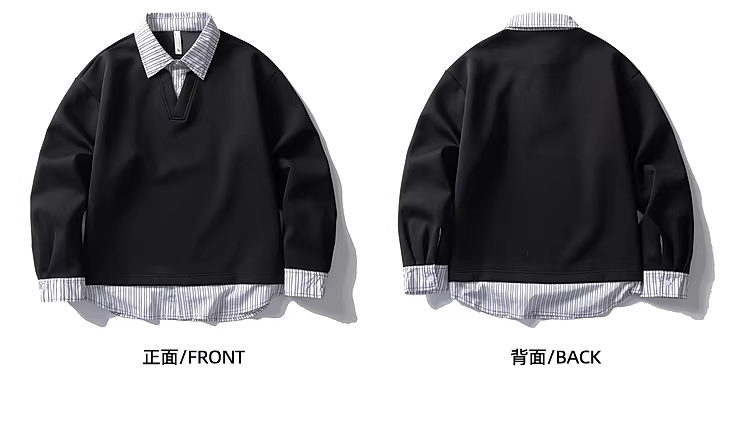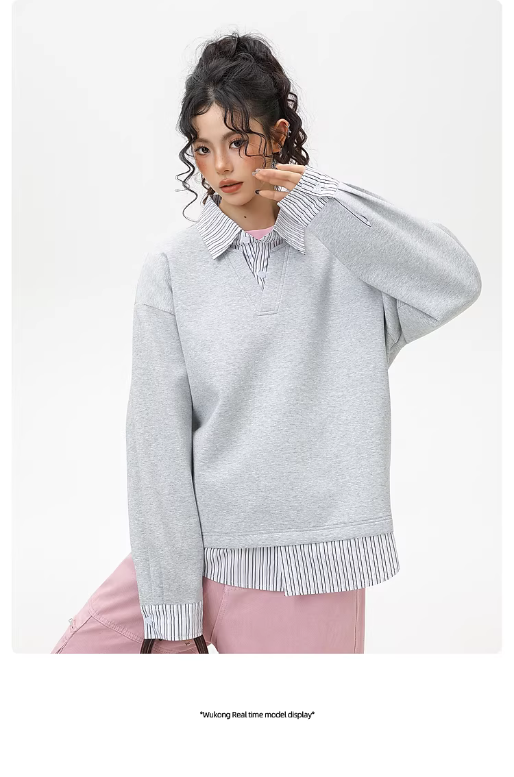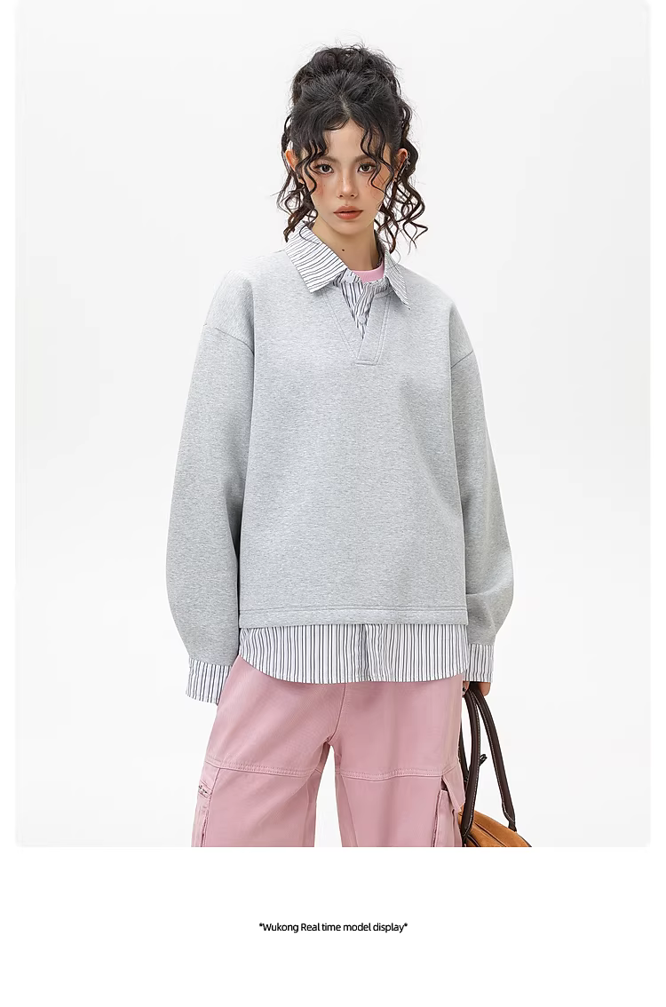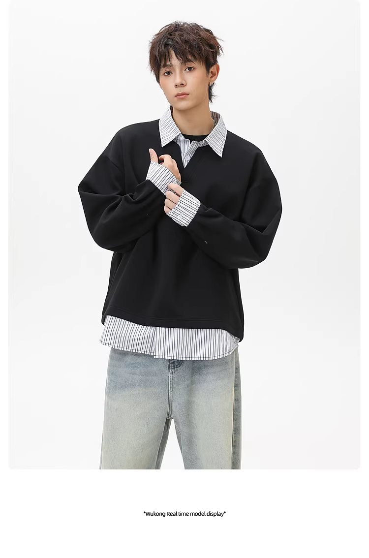 - Wukong có sẵn áo sweatshirt phối màu sọc thời trang giả hai mảnh cổ POLO dành cho nam và nữ, kiểu dáng rộng rãi, áo cặp mặc chung cho mùa thu.