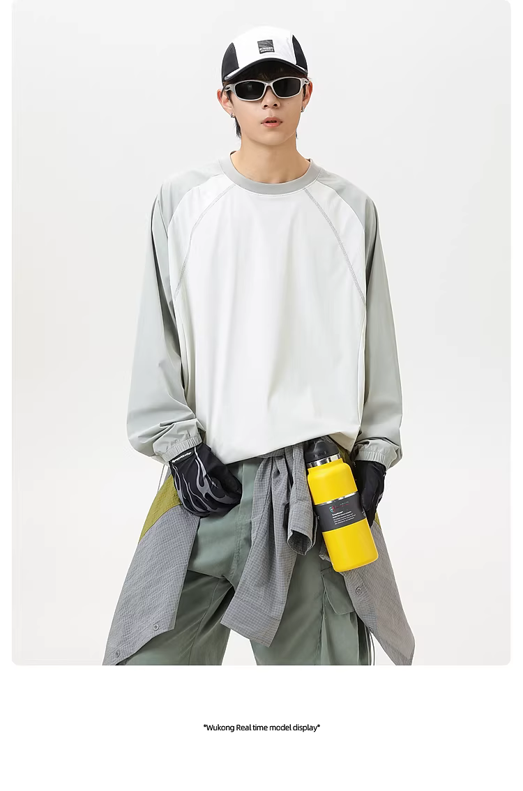 Wukong có sẵn áo thun dài tay kiểu raglan phối màu phong cách thể thao ngoài trời dành cho nam, thương hiệu thời thượng, dáng rộng, áo đa năng dành cho cặp đôi.