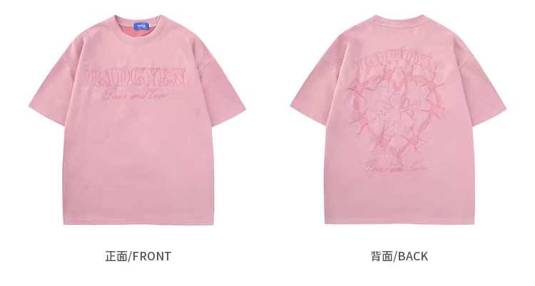 - Wukong có sẵn áo thun ngắn tay da lộn thêu hình trái tim gai phong cách Mỹ dành cho nam, áo thun cặp đôi màu hồng dáng rộng cổ điển.