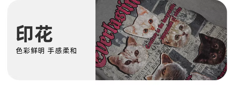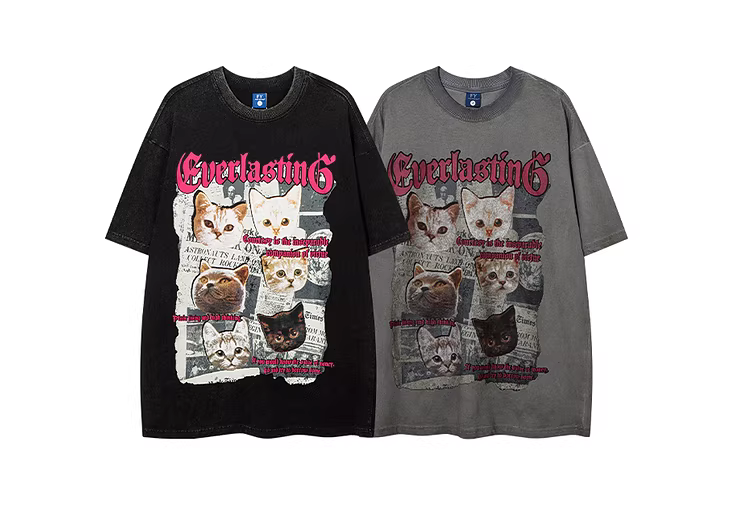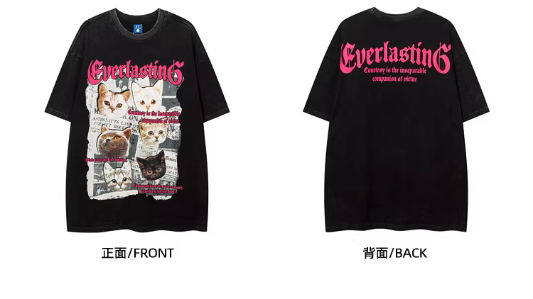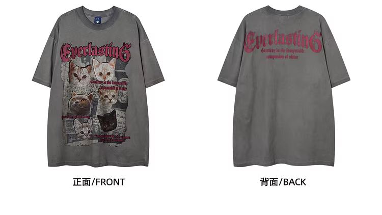 Wukong có sẵn áo thun ngắn tay in hình mèo cổ điển Mỹ, kiểu dáng xước, dành cho nam và nữ, phong cách đường phố hip-hop, áo thun cặp đôi độc đáo.