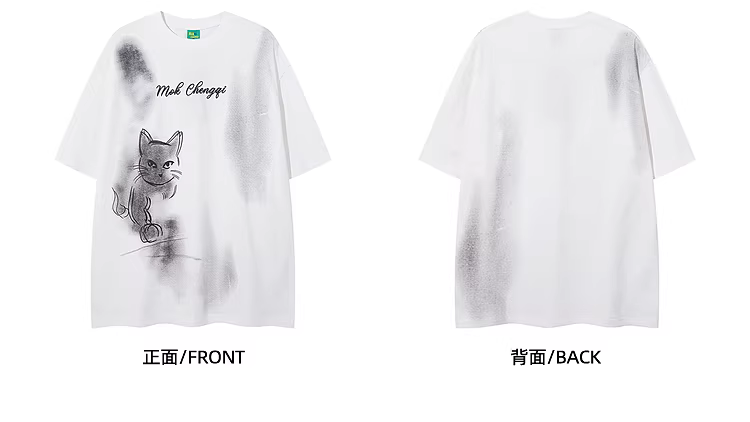 - Wukong có sẵn áo thun ngắn tay in hình mèo graffiti theo phong cách Mỹ dành cho nam và nữ, áo thun rộng rãi đa năng dành cho cặp đôi mùa hè.