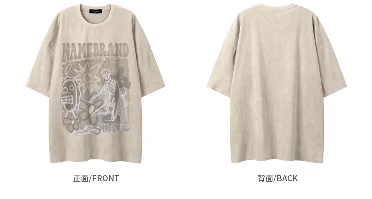 - Wukong có sẵn áo thun ngắn tay màu hồng da lộn in hình đầu lâu kiểu Mỹ dành cho nam, áo thun cặp đôi oversize phong cách hip-hop.