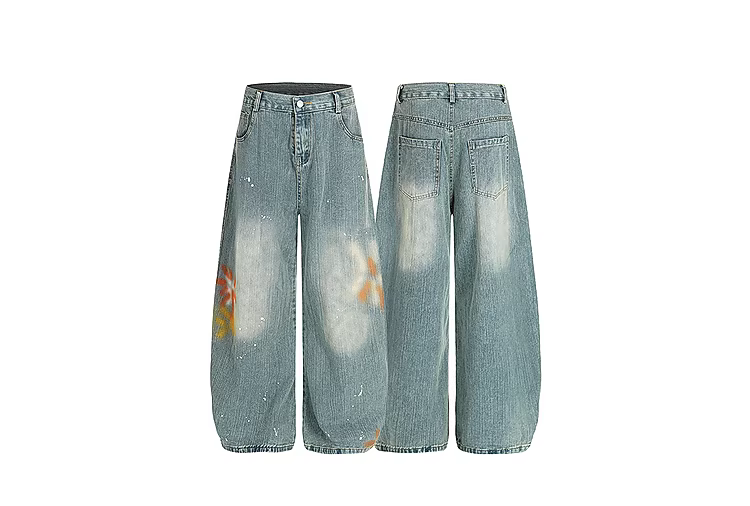 - Wukong có sẵn quần jean kiểu Mỹ thời thượng họa tiết tre, kiểu dáng vintage, rộng rãi, đa năng, ống rộng dành cho nam và nữ.