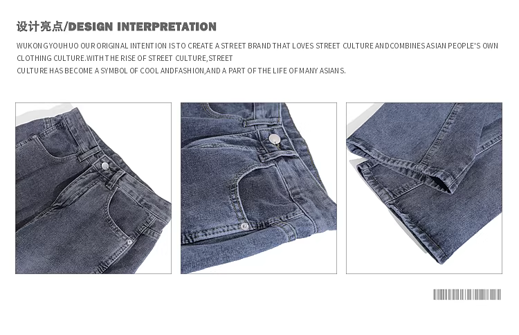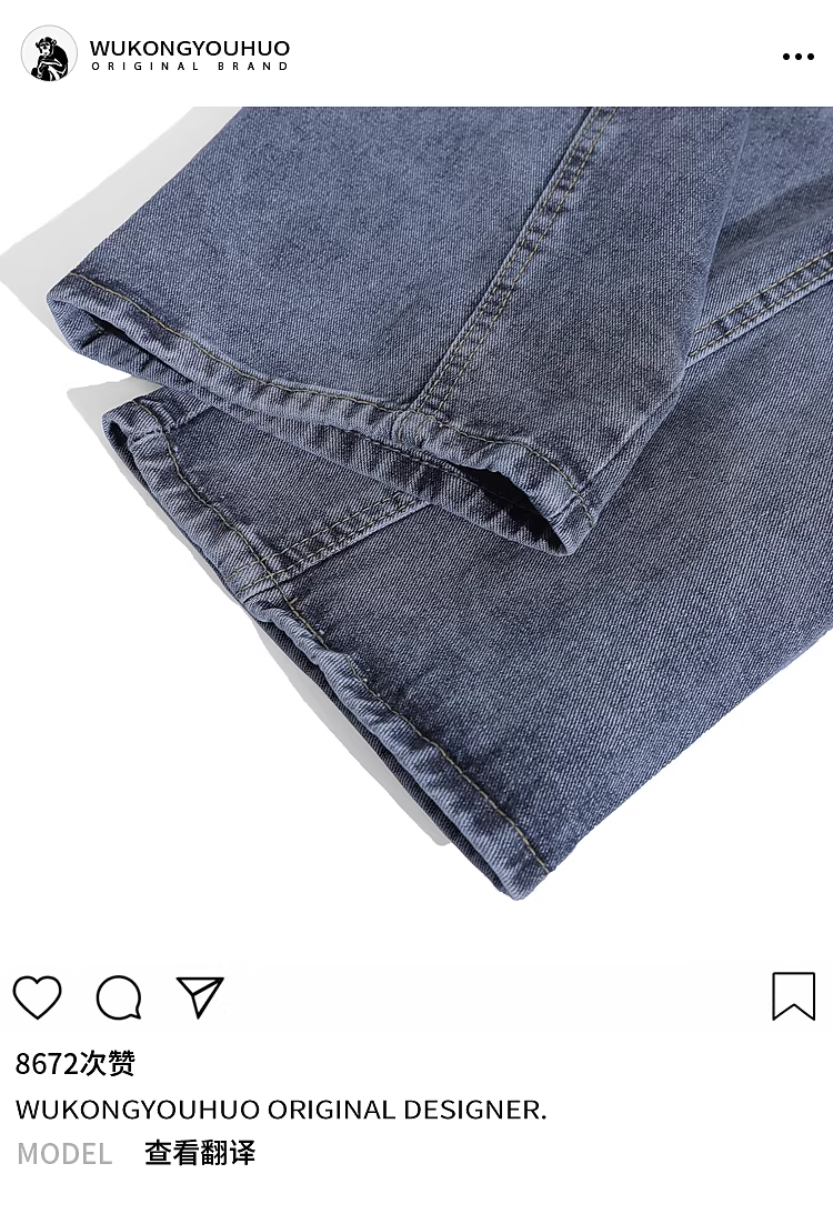 - Wukong có sẵn quần jean nam kiểu đường phố Mỹ, cạp cao, xước nhẹ, dáng thẳng, ôm vừa vặn, quần dài ống rộng, thời trang.