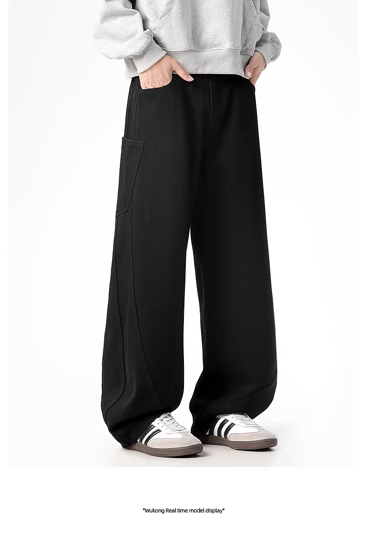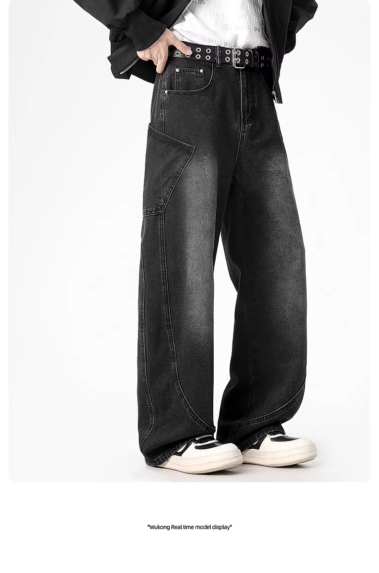 - Wukong có sẵn quần jean nam kiểu Mỹ thời thượng, thiết kế xẻ tà, giặt mài, dáng thẳng, quần ống rộng vintage, đa năng, dài chấm đất.