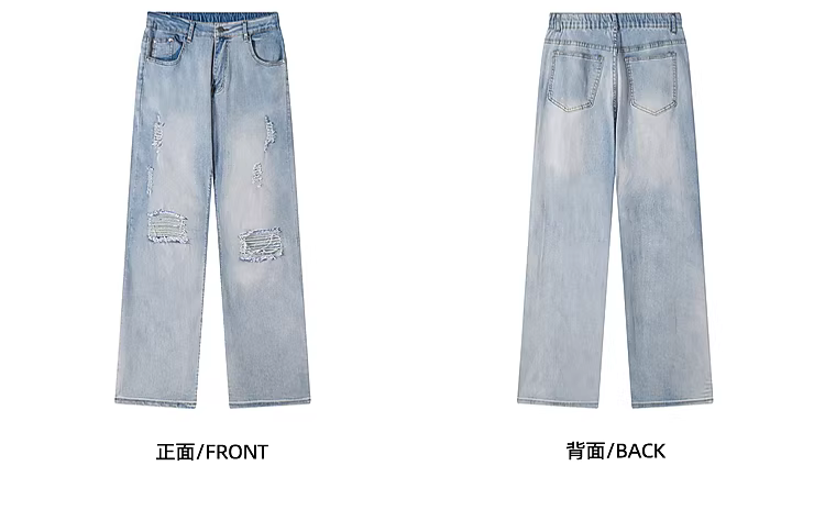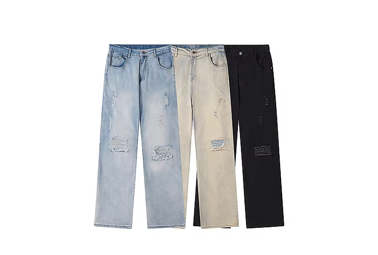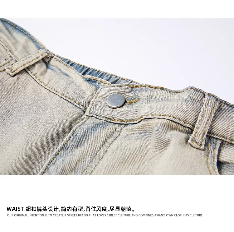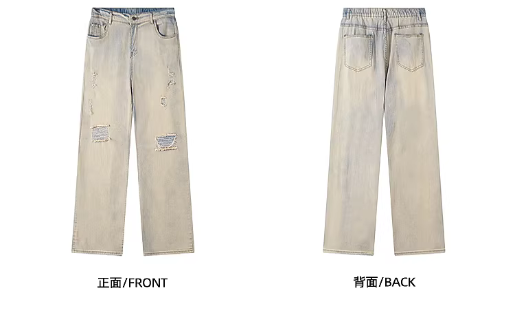 - Wukong có sẵn quần jean nam ống đứng màu vàng đất rách kiểu Mỹ thời thượng, quần dài ống rộng đa năng phong cách đường phố cổ điển.