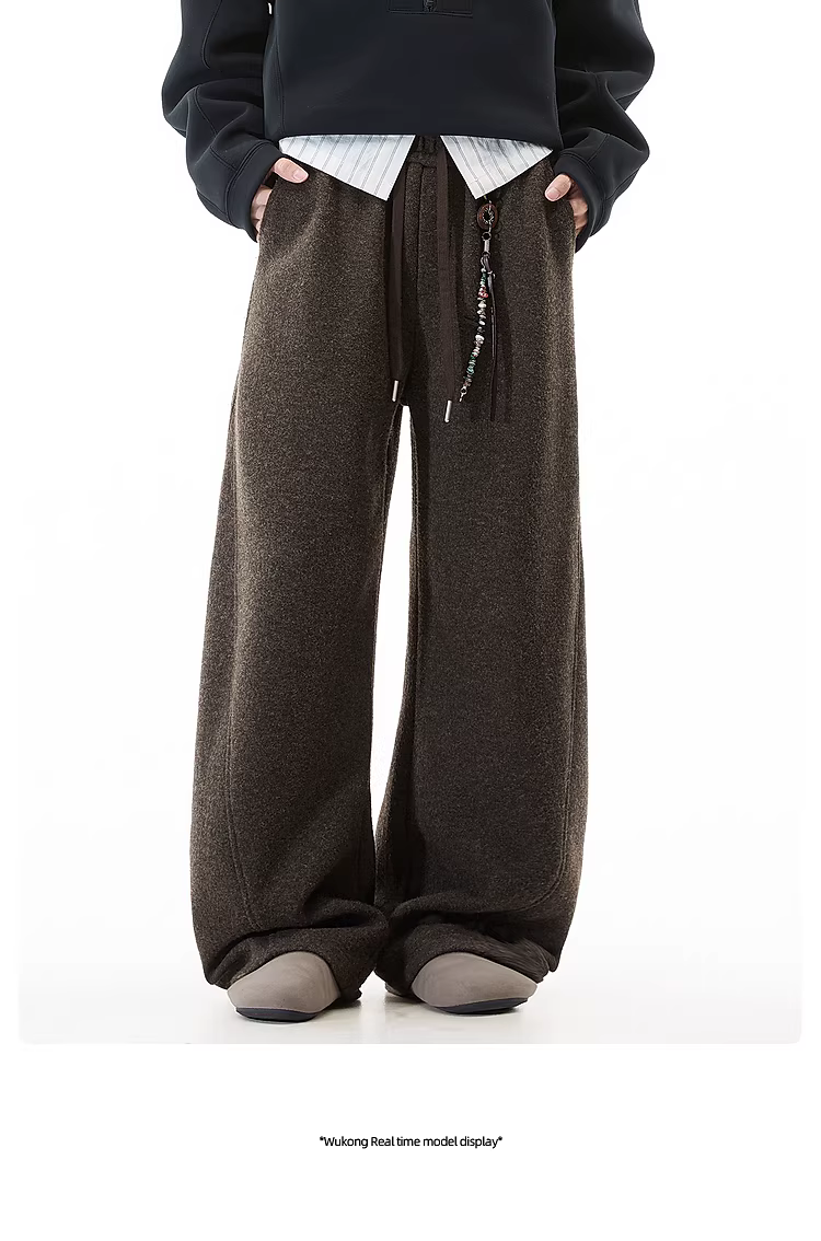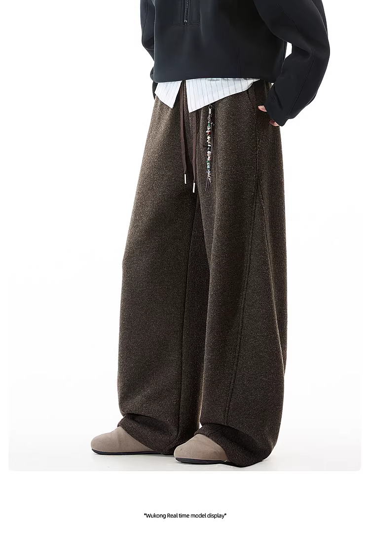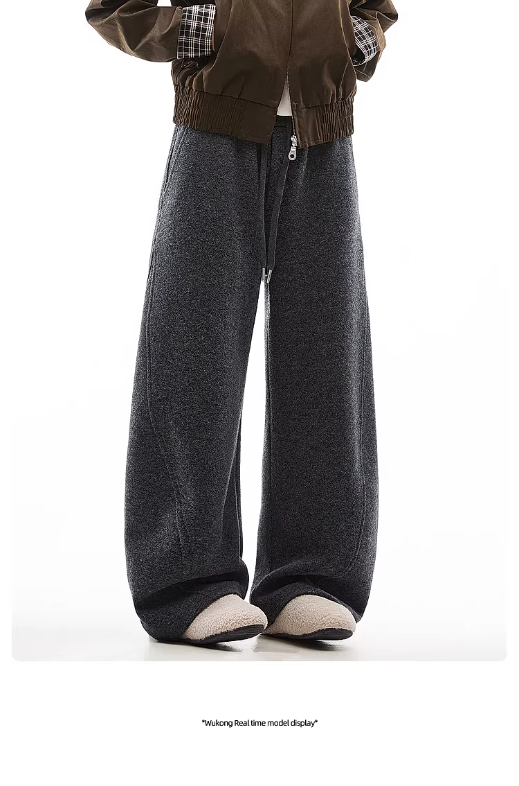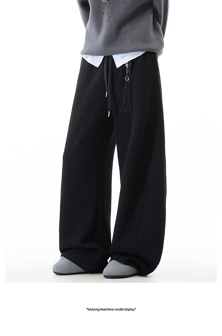 - Wukong có sẵn quần thể thao nam chất liệu len dày lót lông phong cách retro Mỹ, quần ống rộng mặc mùa đông, kiểu dáng rộng rãi, dành cho cặp đôi.