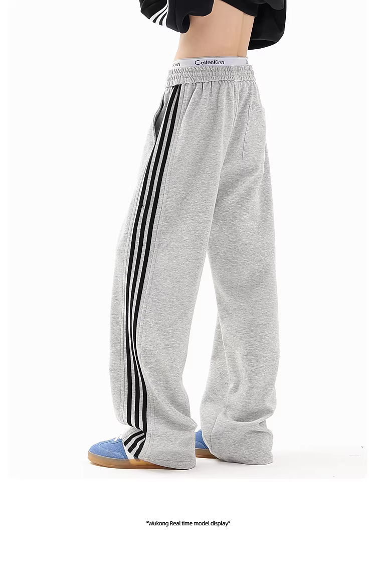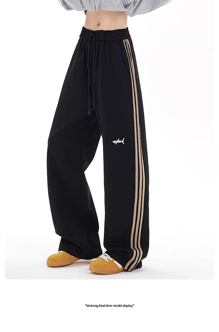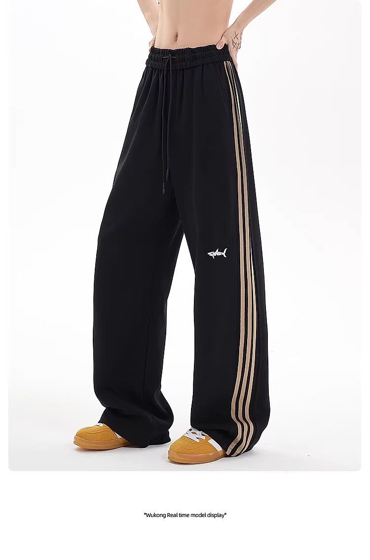 Wukong có sẵn quần thể thao nam kiểu Mỹ sọc thẳng, dáng suông, chất liệu mềm mại, quần dài rộng rãi, đa năng, phong cách thường ngày.