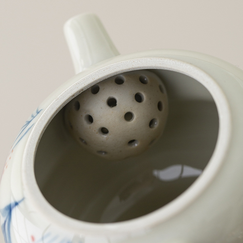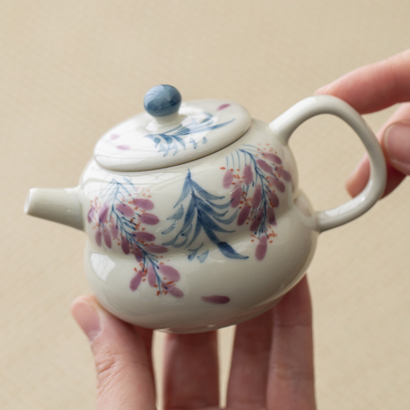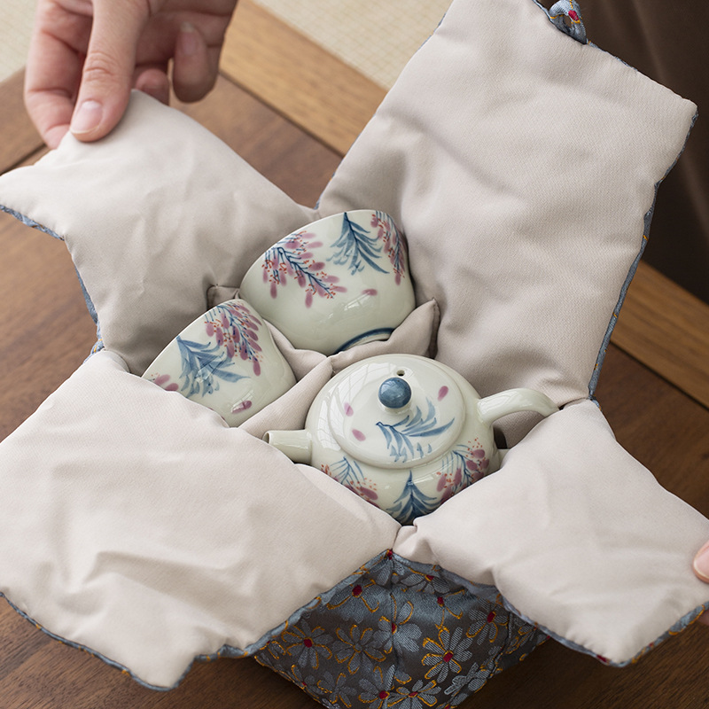 Xám thực vật vẽ tay hoa tử đằng bộ trà công phu ấm trà gốm sứ bộ trà du lịch gia dụng nữ một bình hai cốc