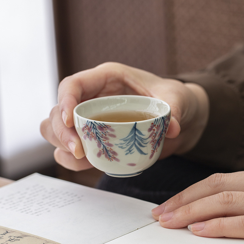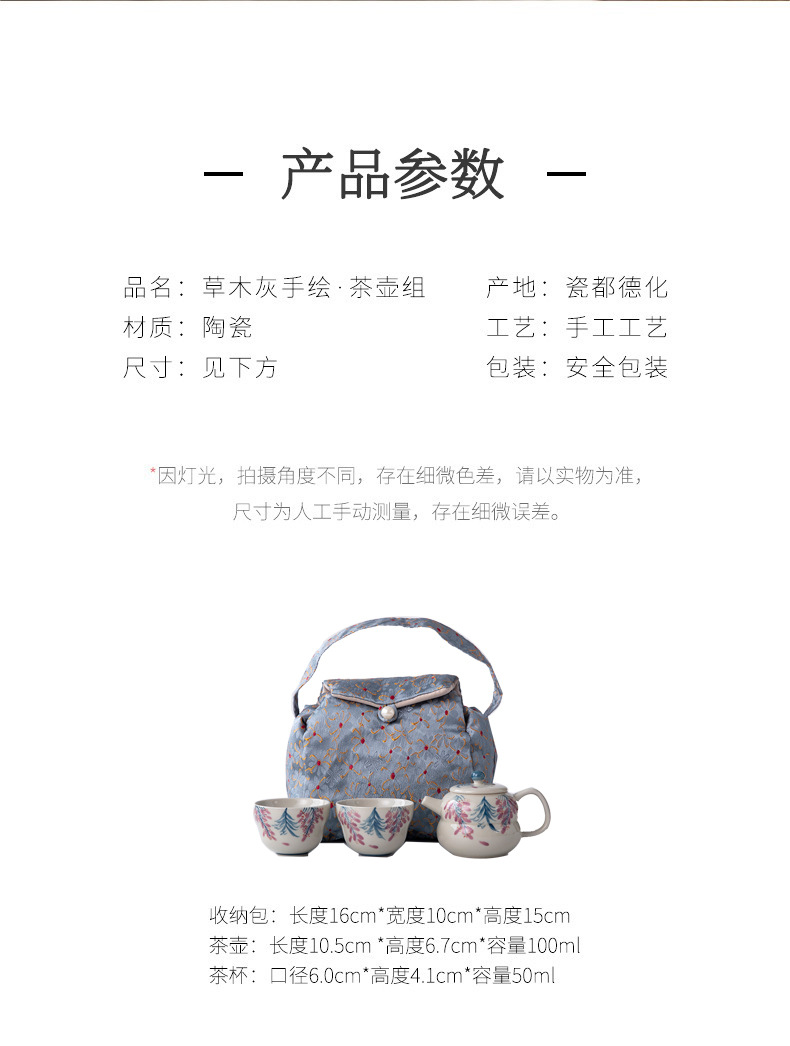 - Xám thực vật vẽ tay hoa tử đằng bộ trà công phu ấm trà gốm sứ bộ trà du lịch gia dụng nữ một bình hai cốc