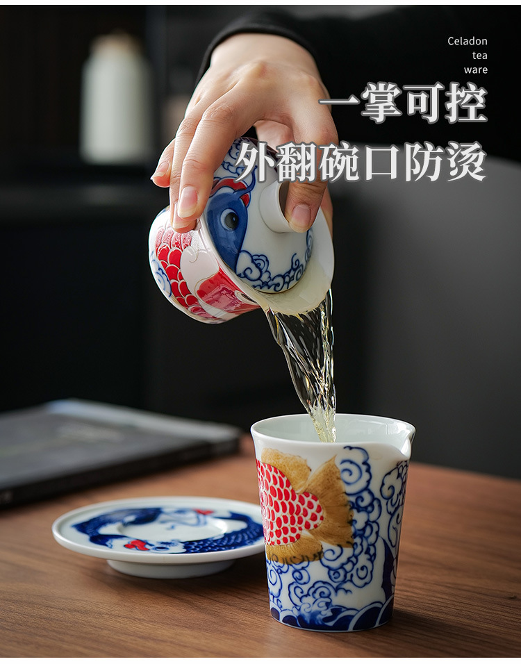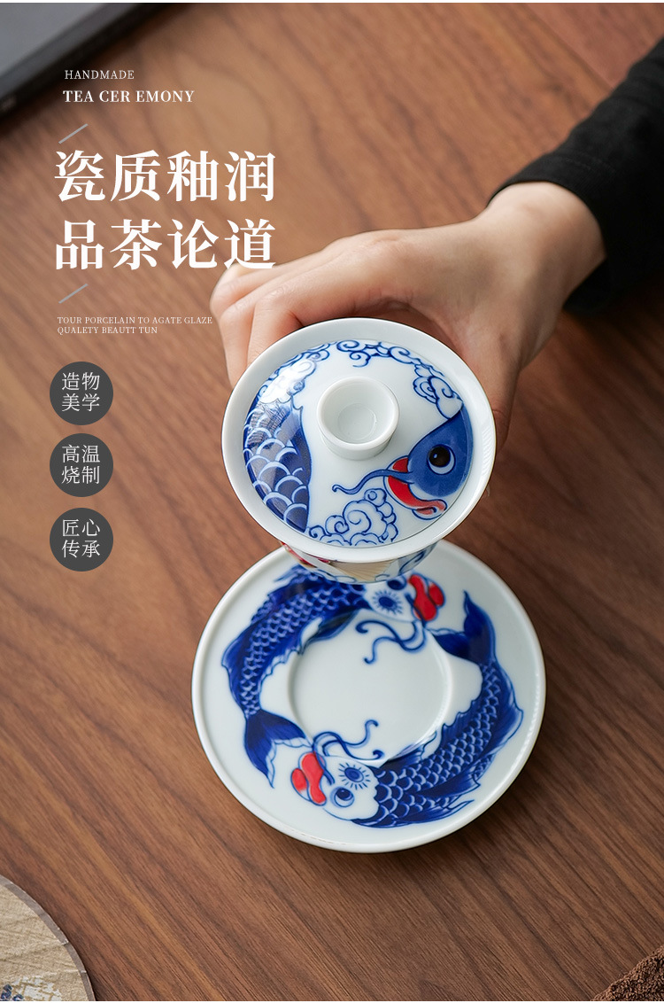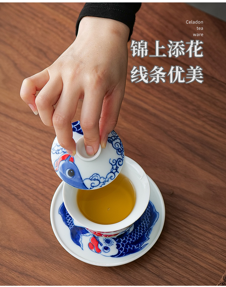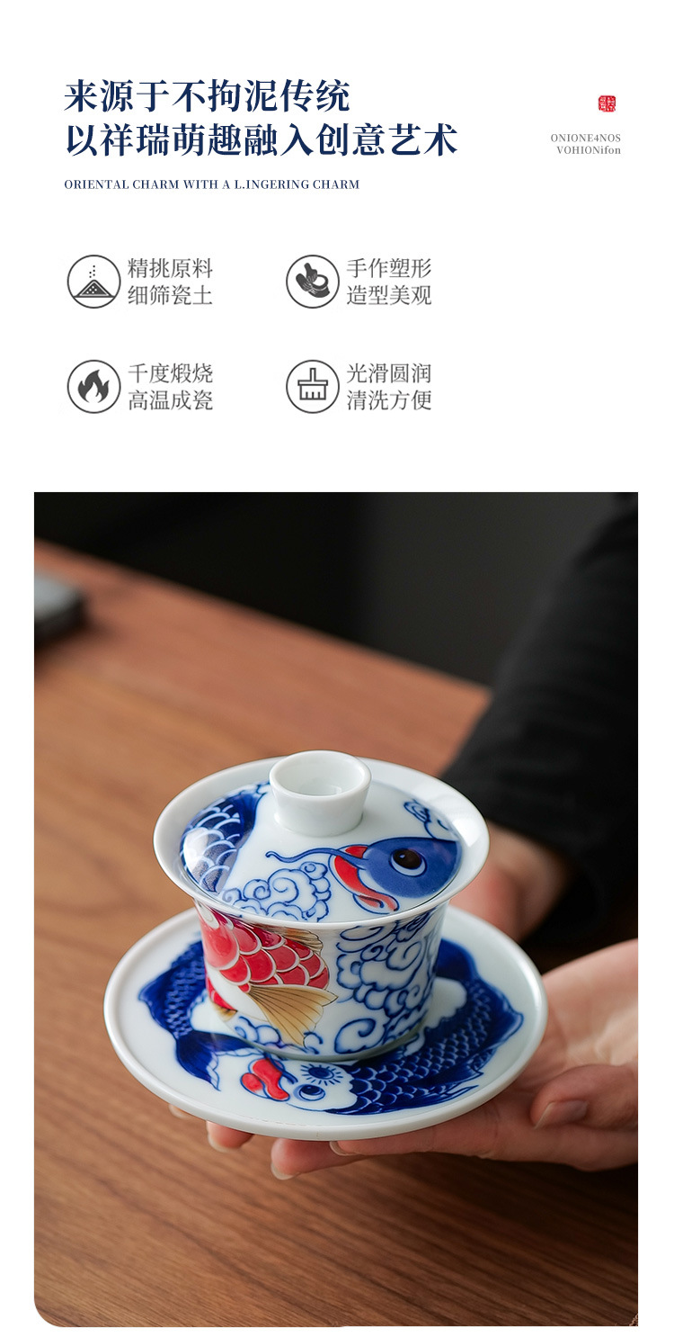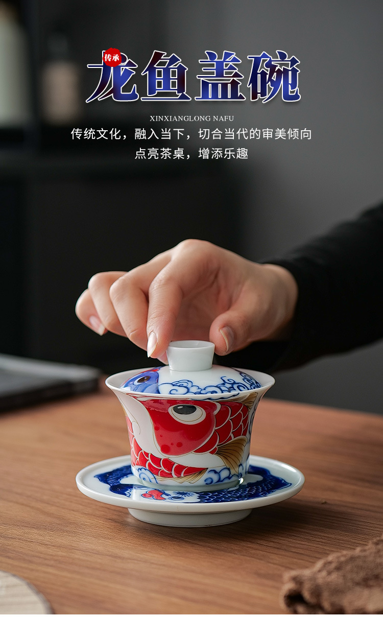 - Xianglong Nafu móng ngựa ba cái nắp bát trà Kung Fu gốm sứ cao cấp một chiếc bát trà có nắp bộ trà không nóng bán buôn