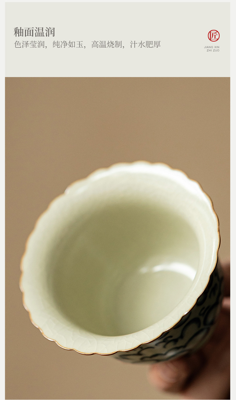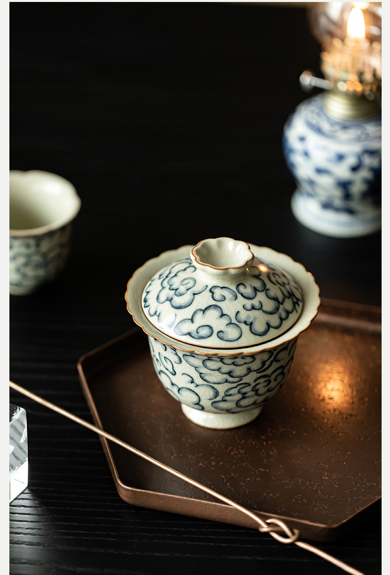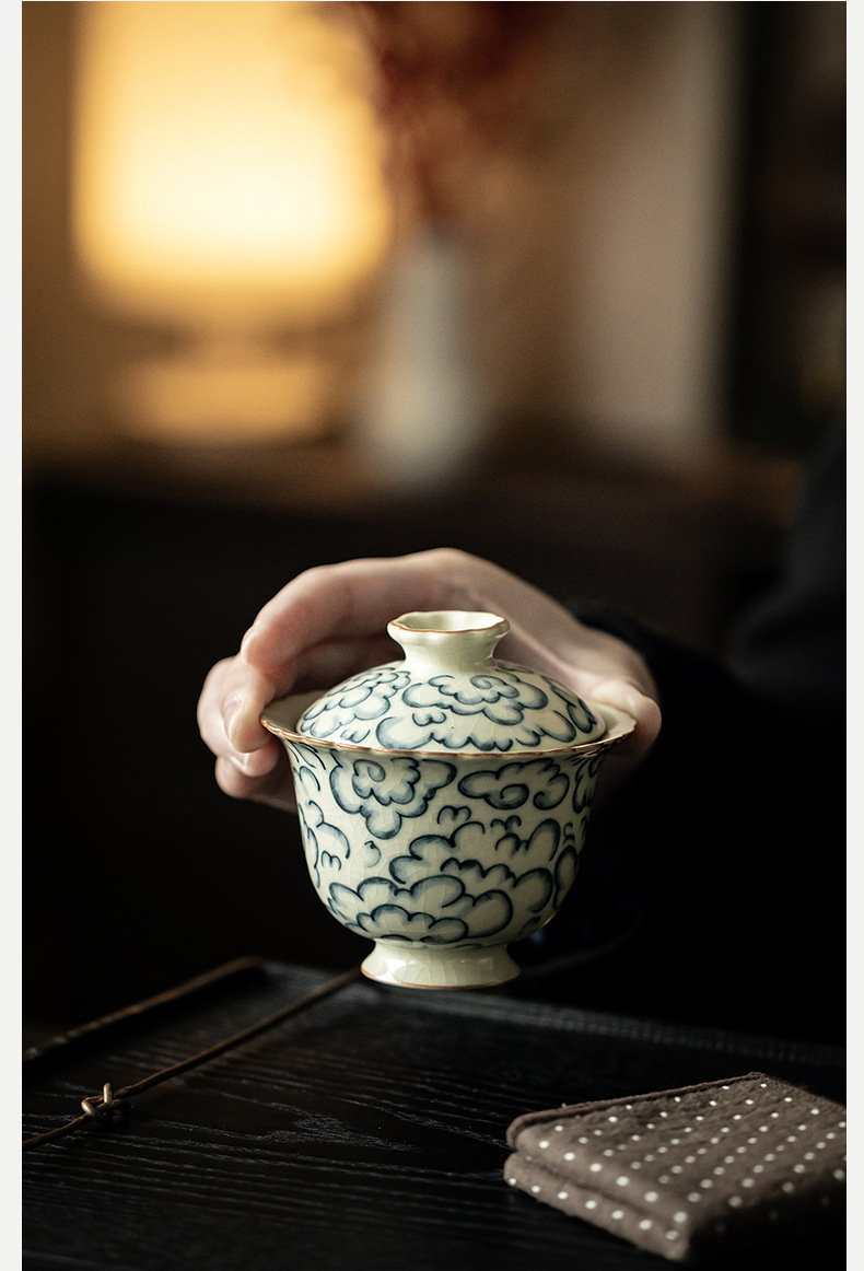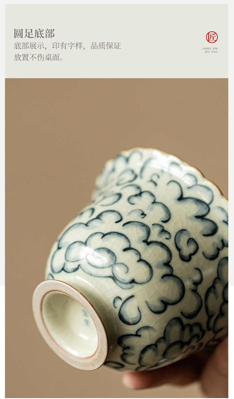 - Xiangyun Ru Lò ren hai nắp bát uống trà bát tách trà đơn không nóng tay dụng cụ pha trà Kung Fu gốm cổ